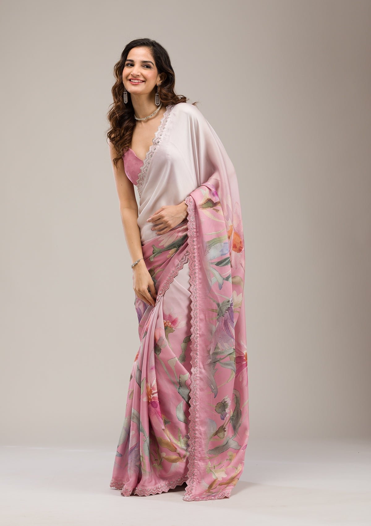 – Baby Pink Saree in Satin fabric