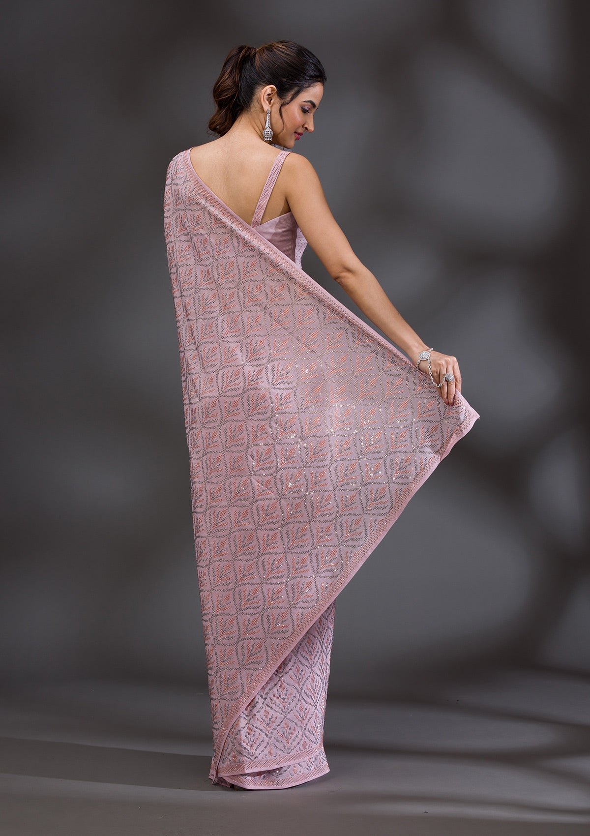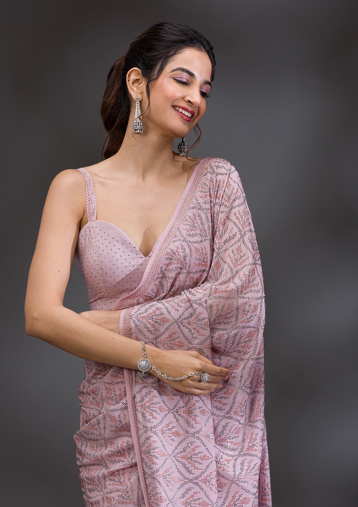 Elegant Baby Pink Satin Saree with Stunning Stonework