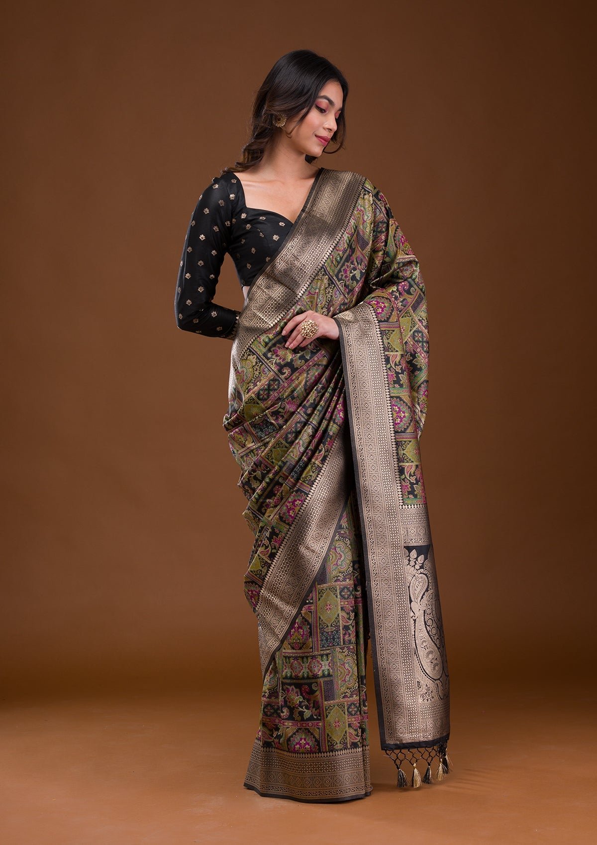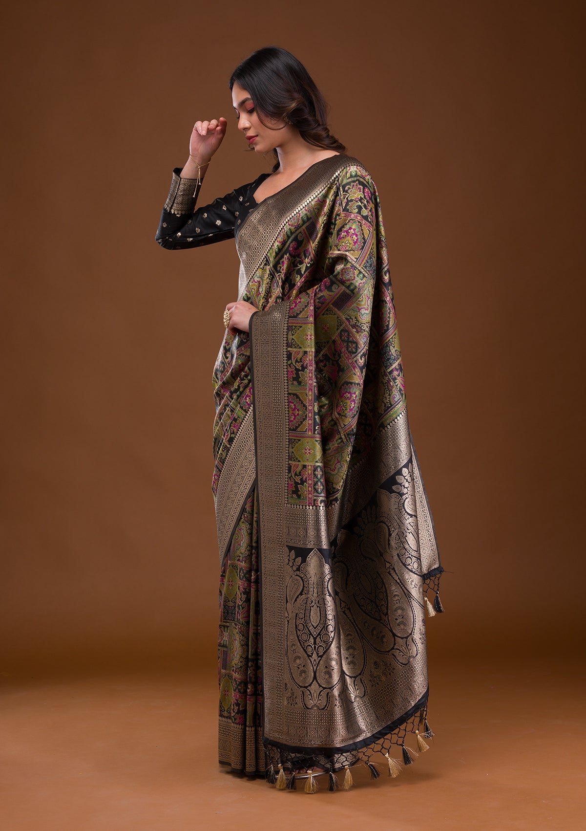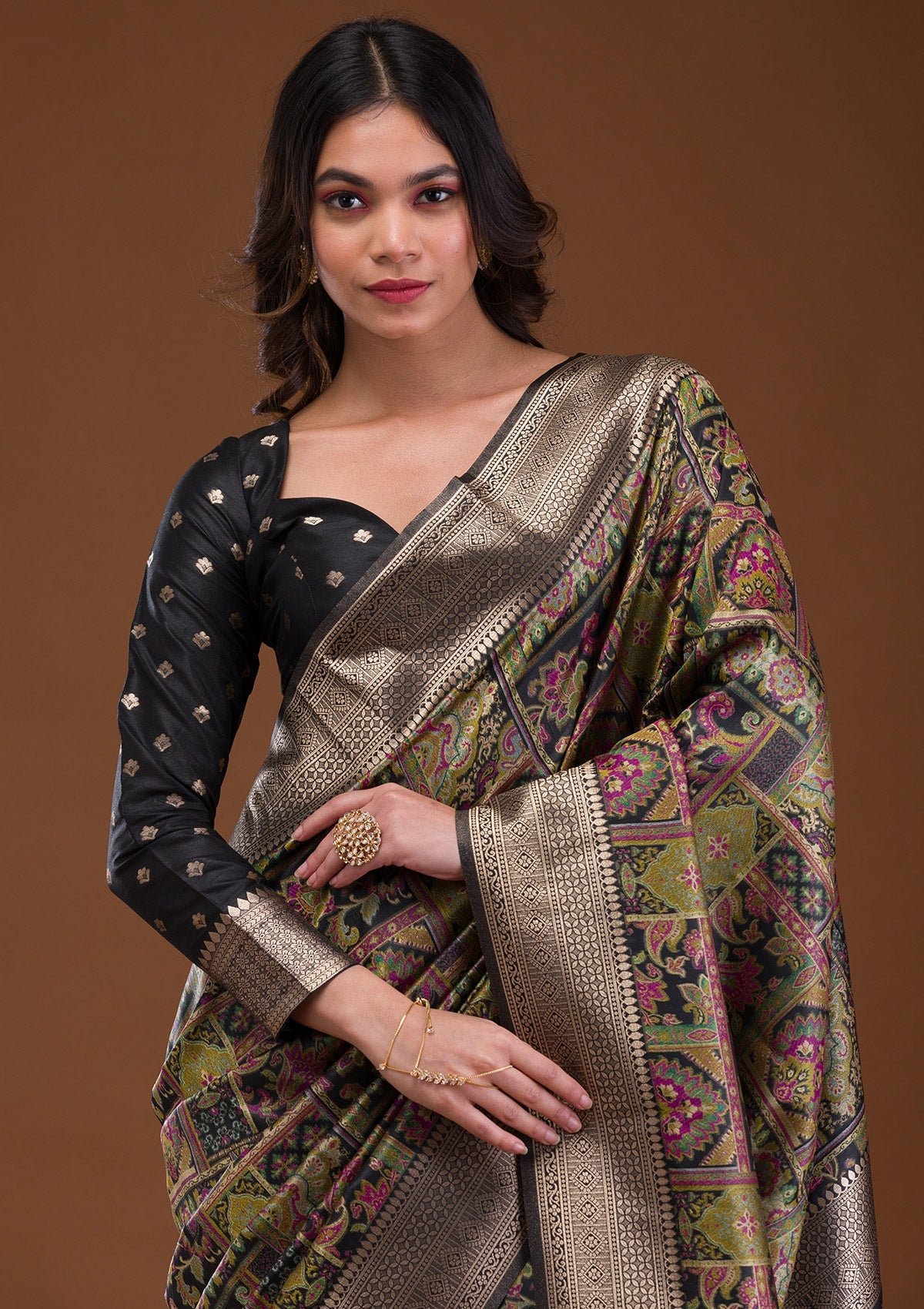 Elegant Black Banarasi Silk Saree with Exquisite Zariwork