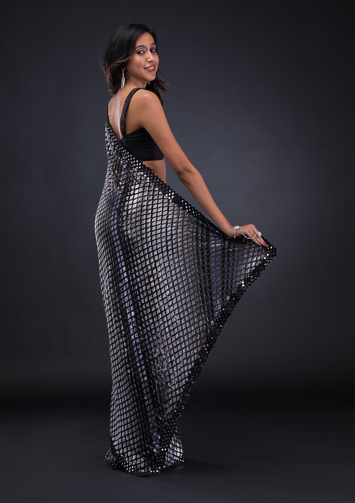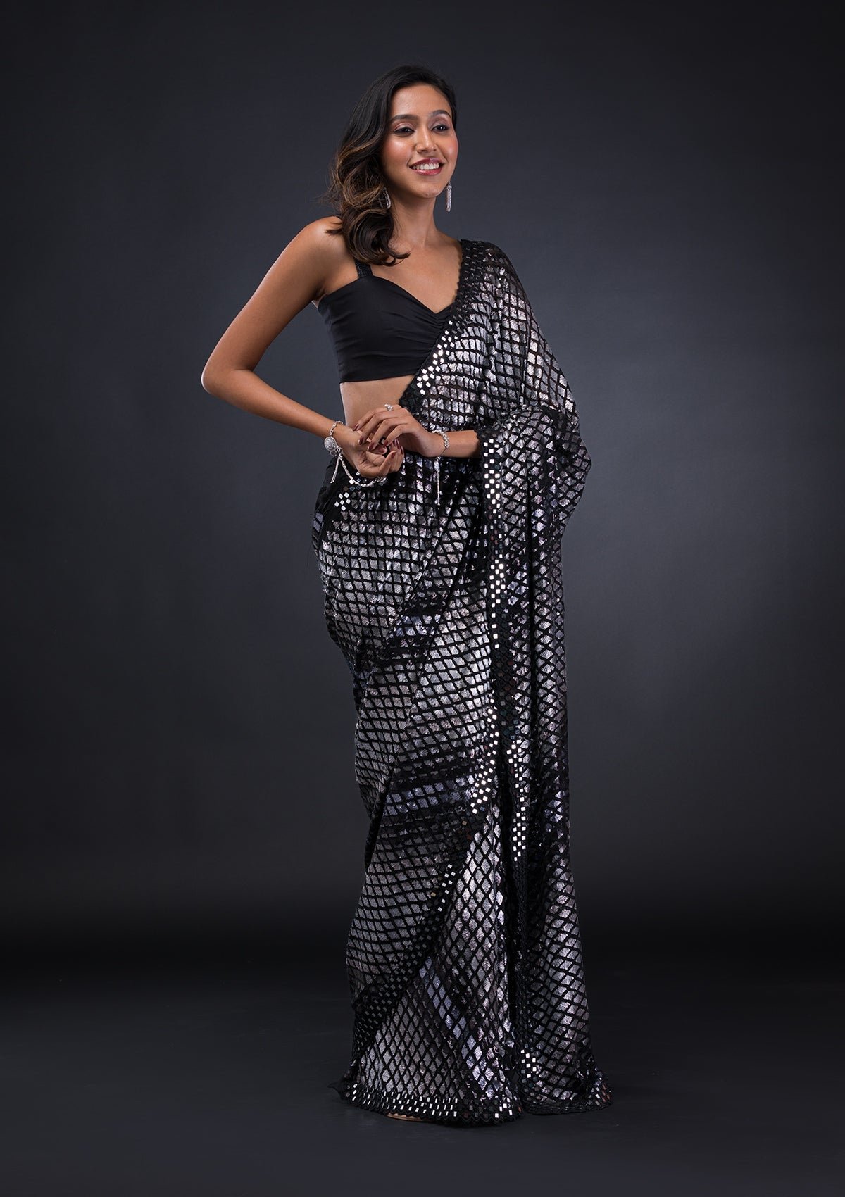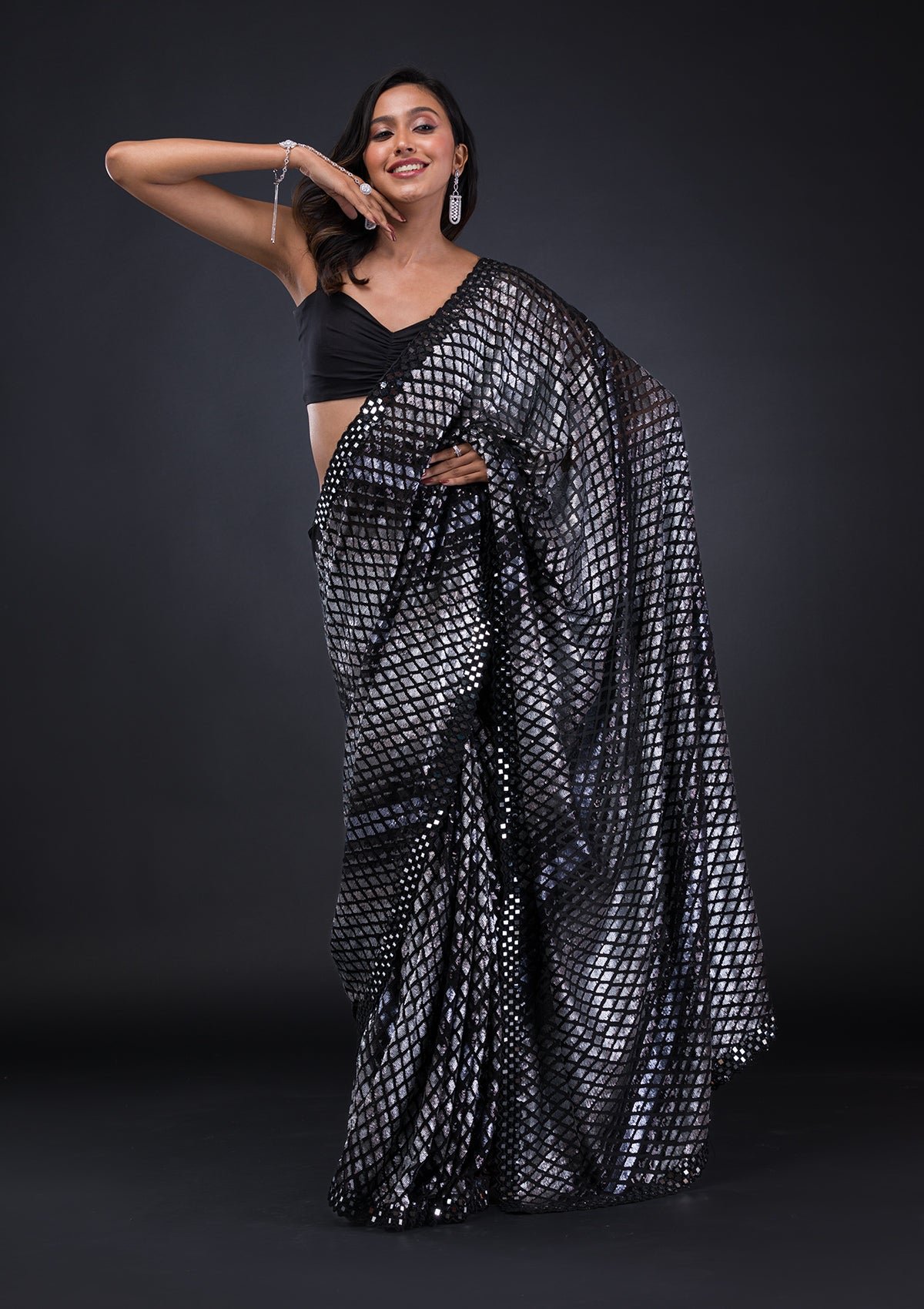 – The Saree is elevated with Sequins embroidery