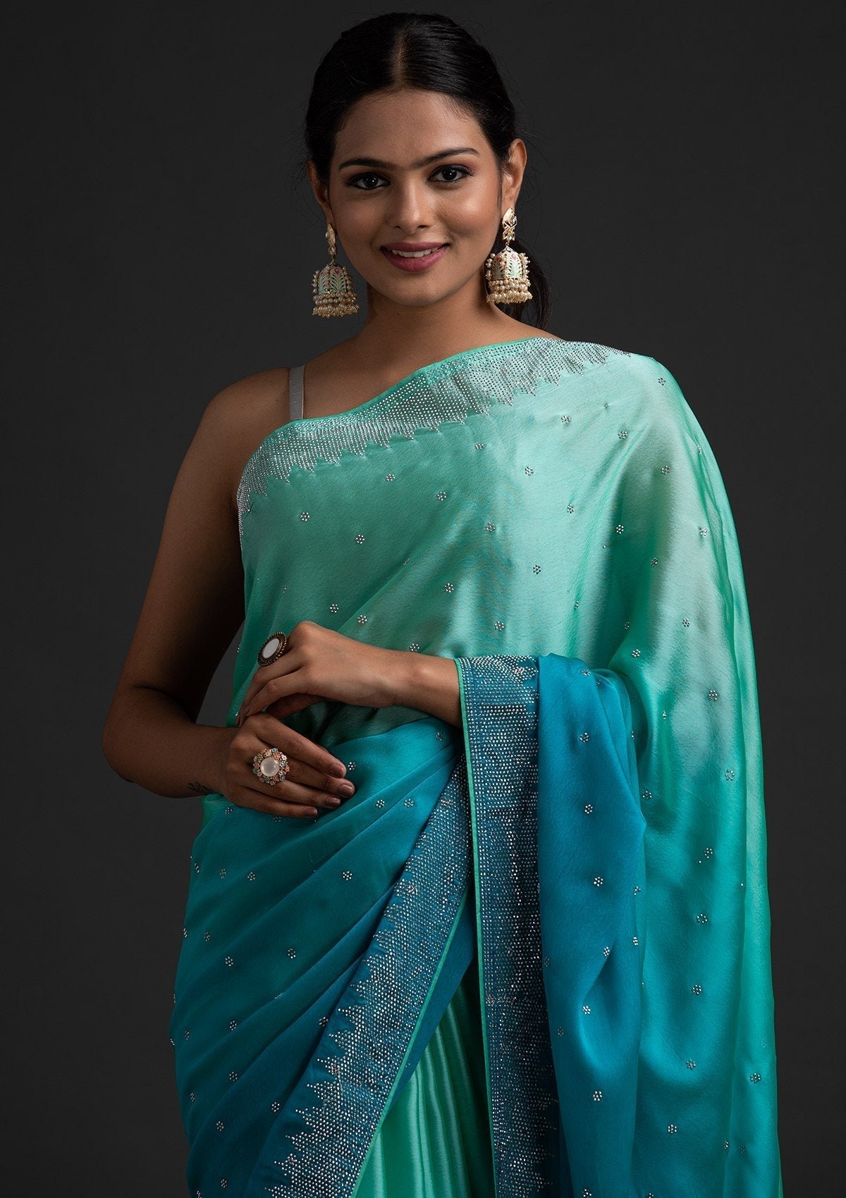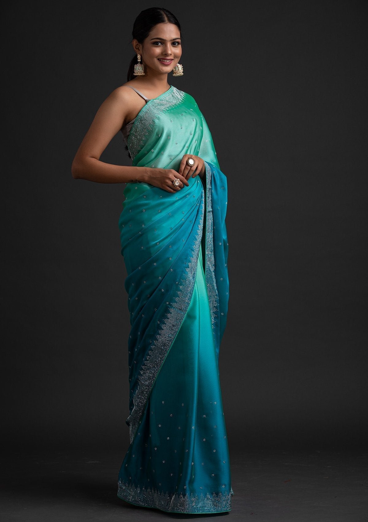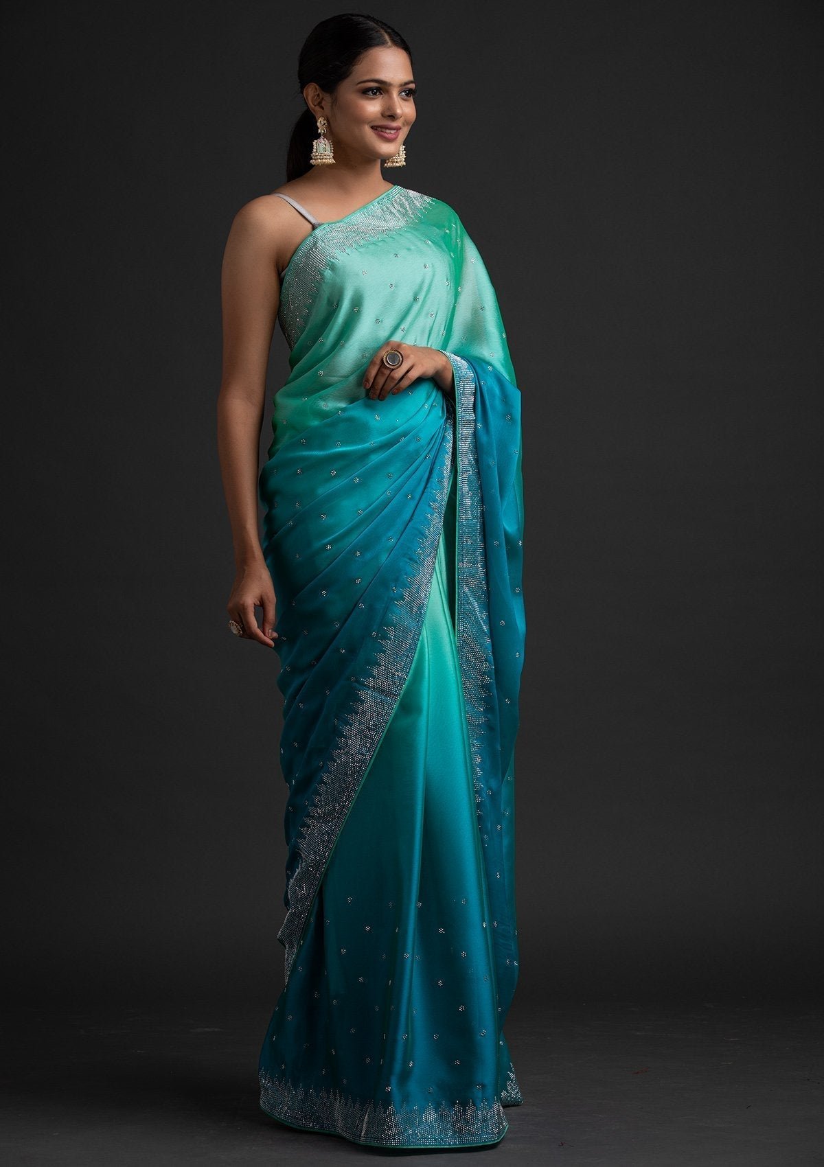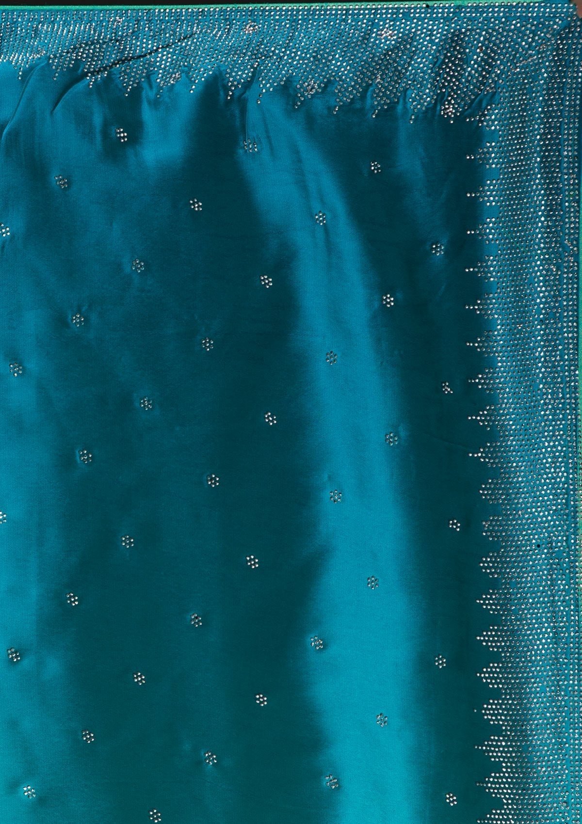 – Sky blue saree in semi crepe fabric