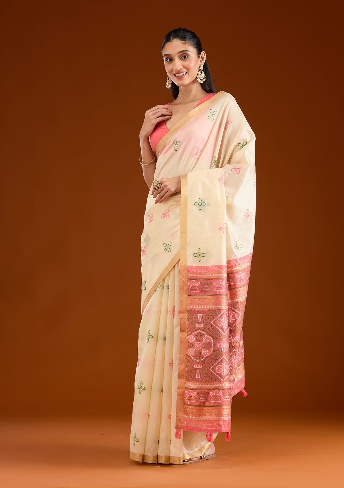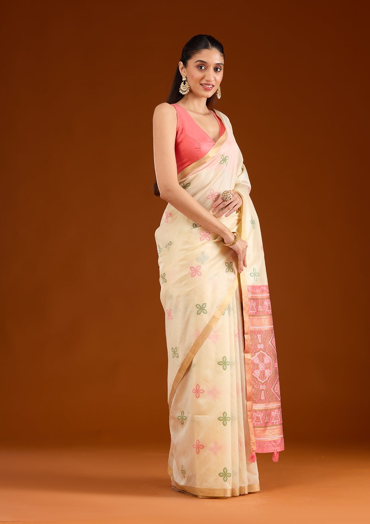 Elegant Cream Tissue Saree with Exquisite Zari Work
