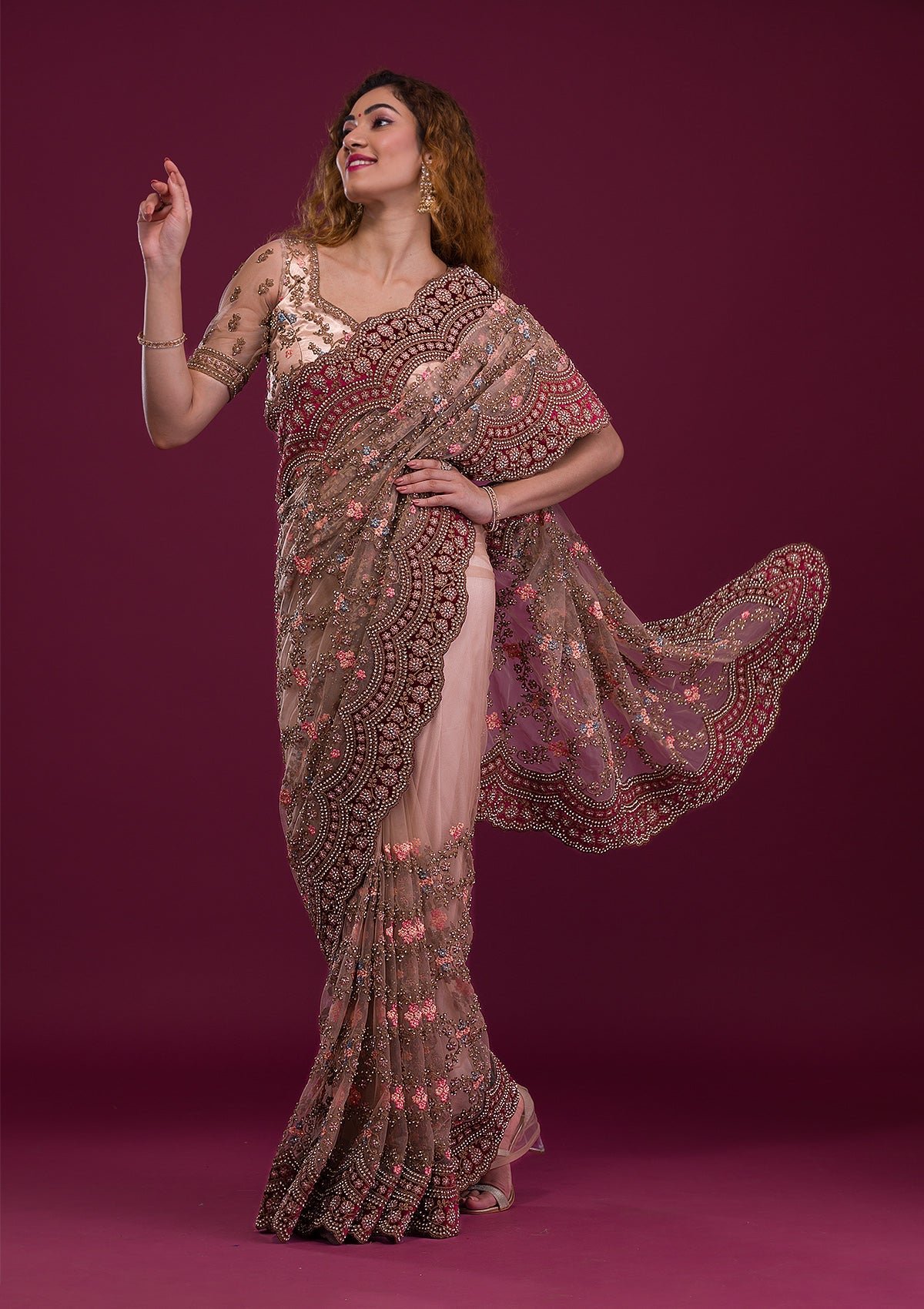 – Light Brown Saree in Net fabric