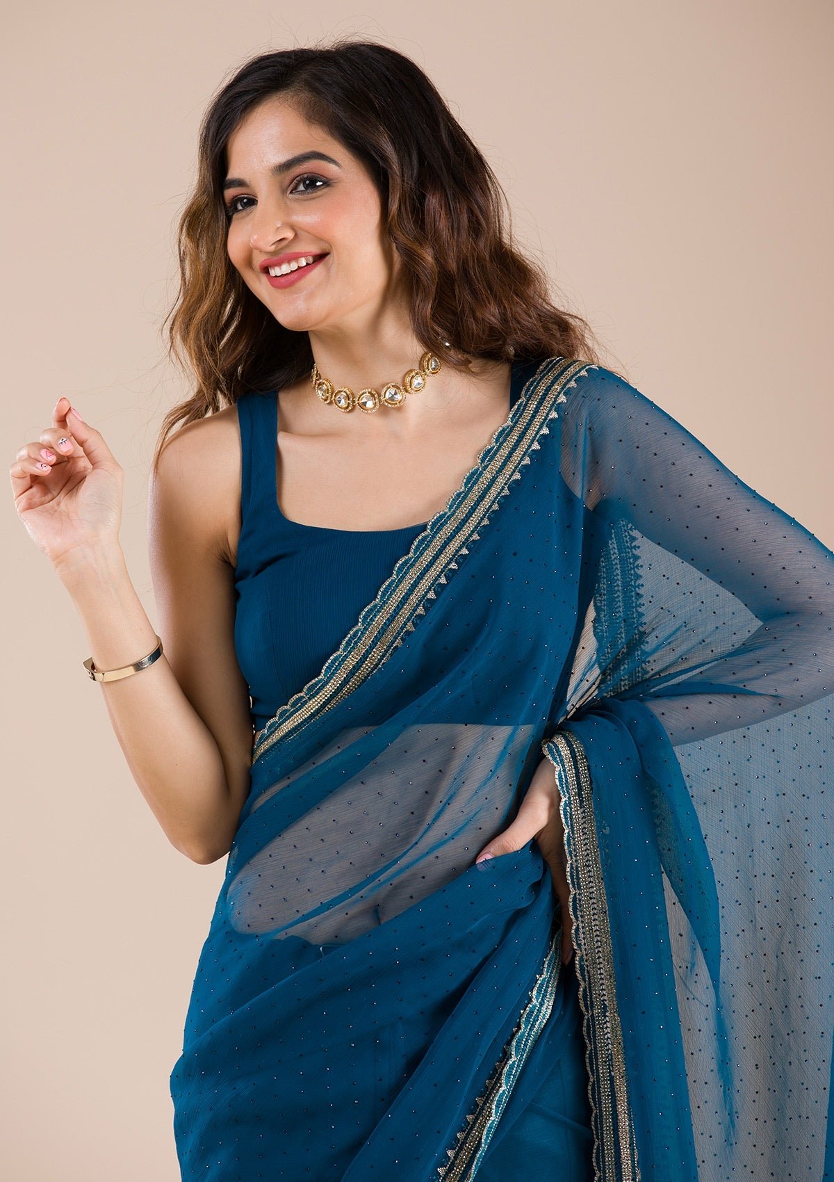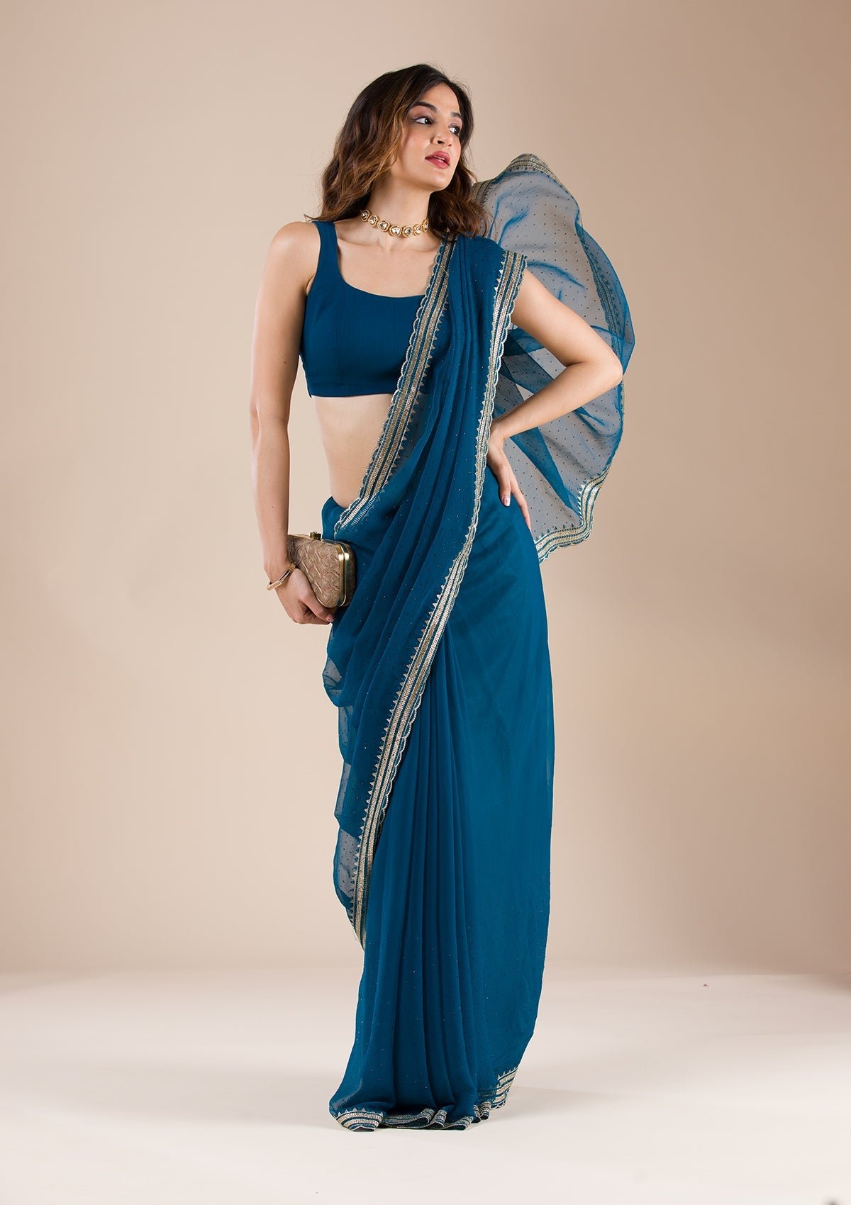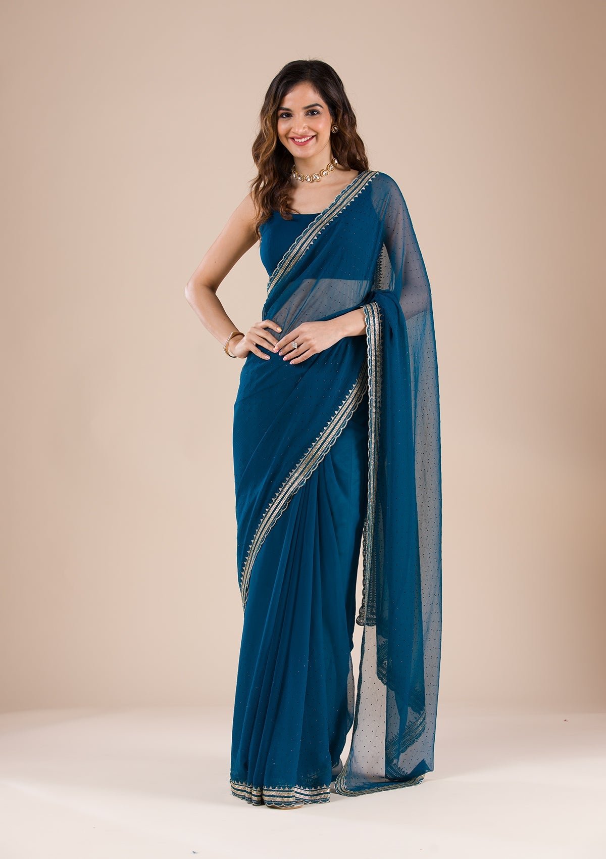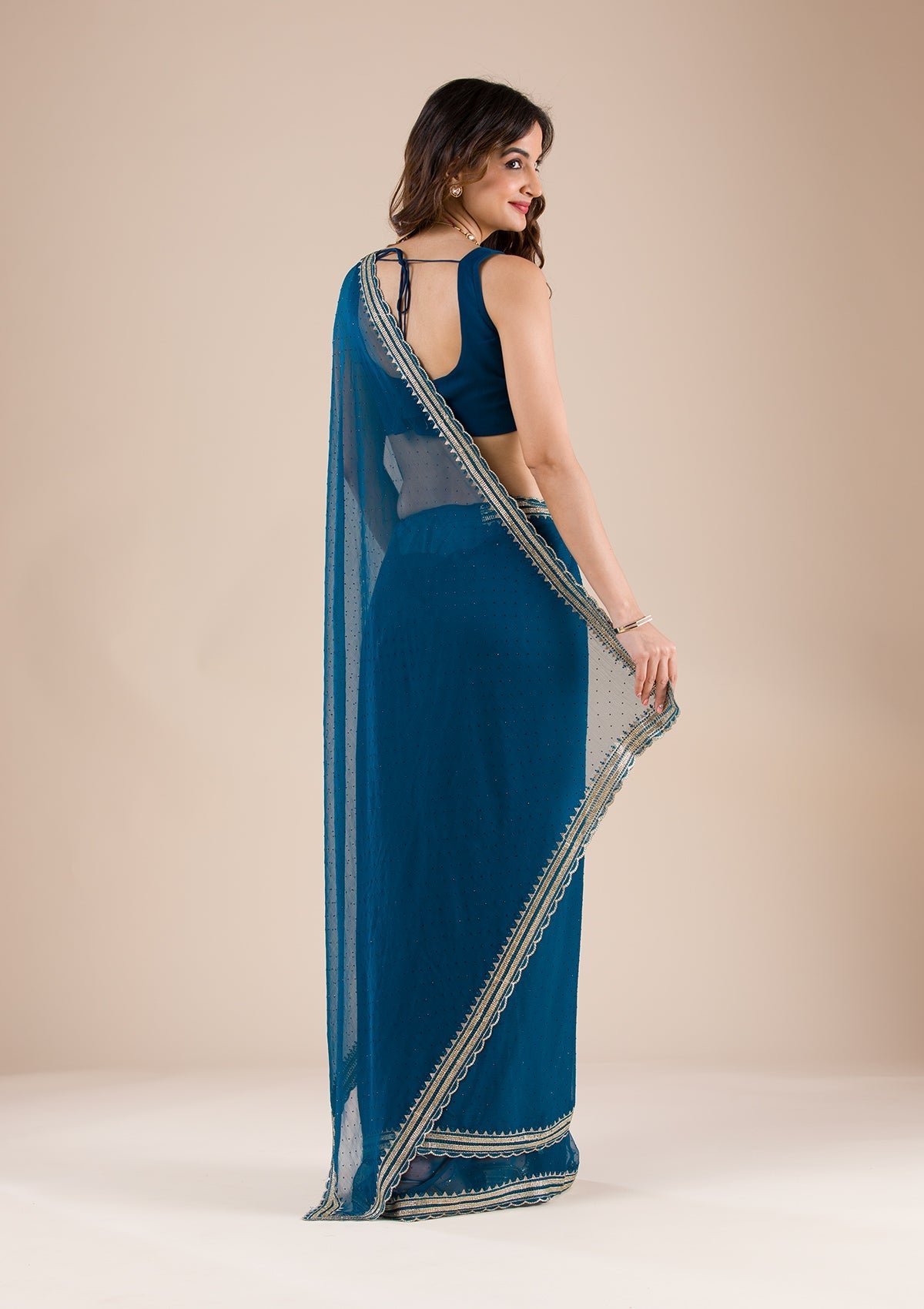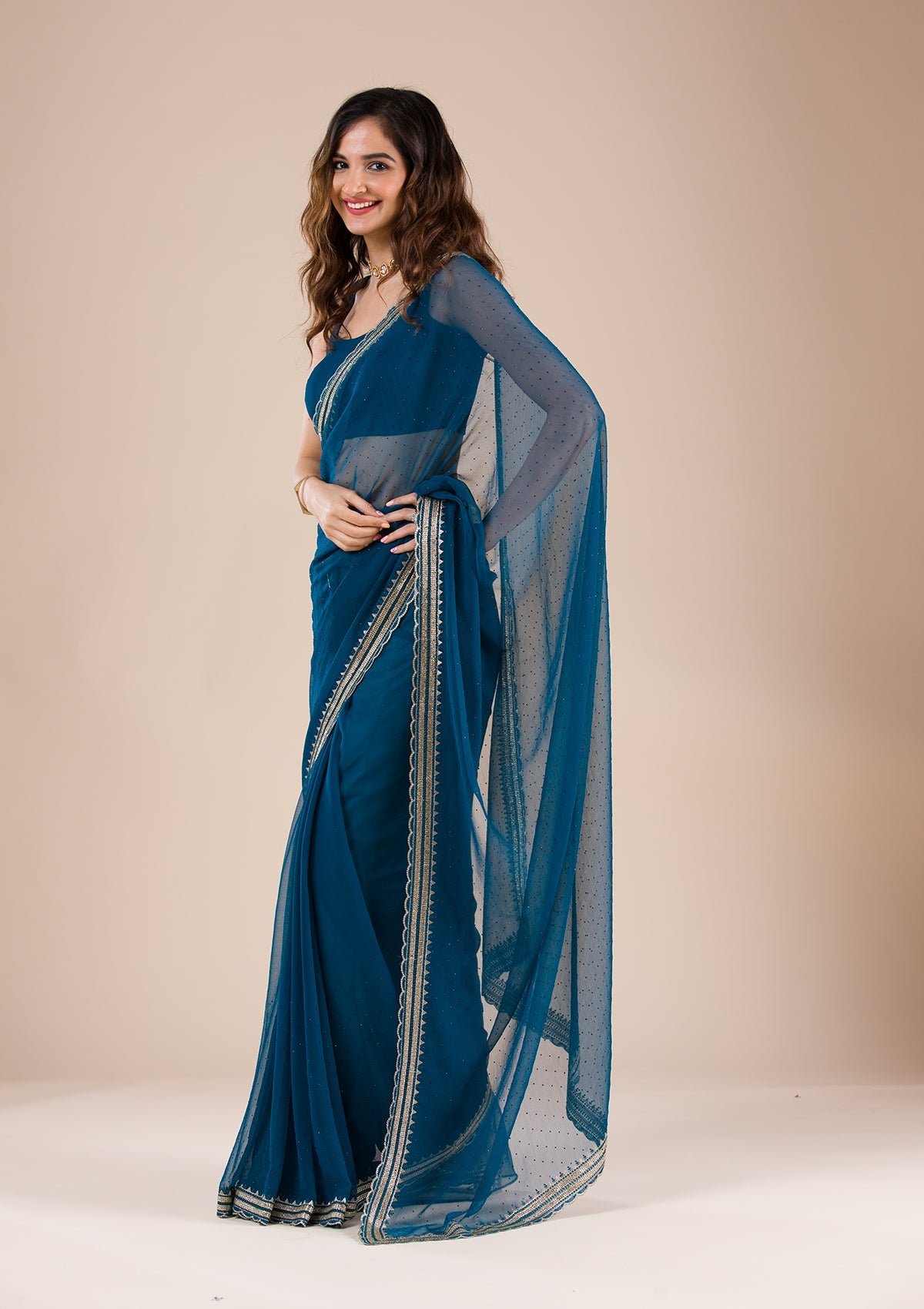 – Peacock Blue Saree in Chiffon fabric