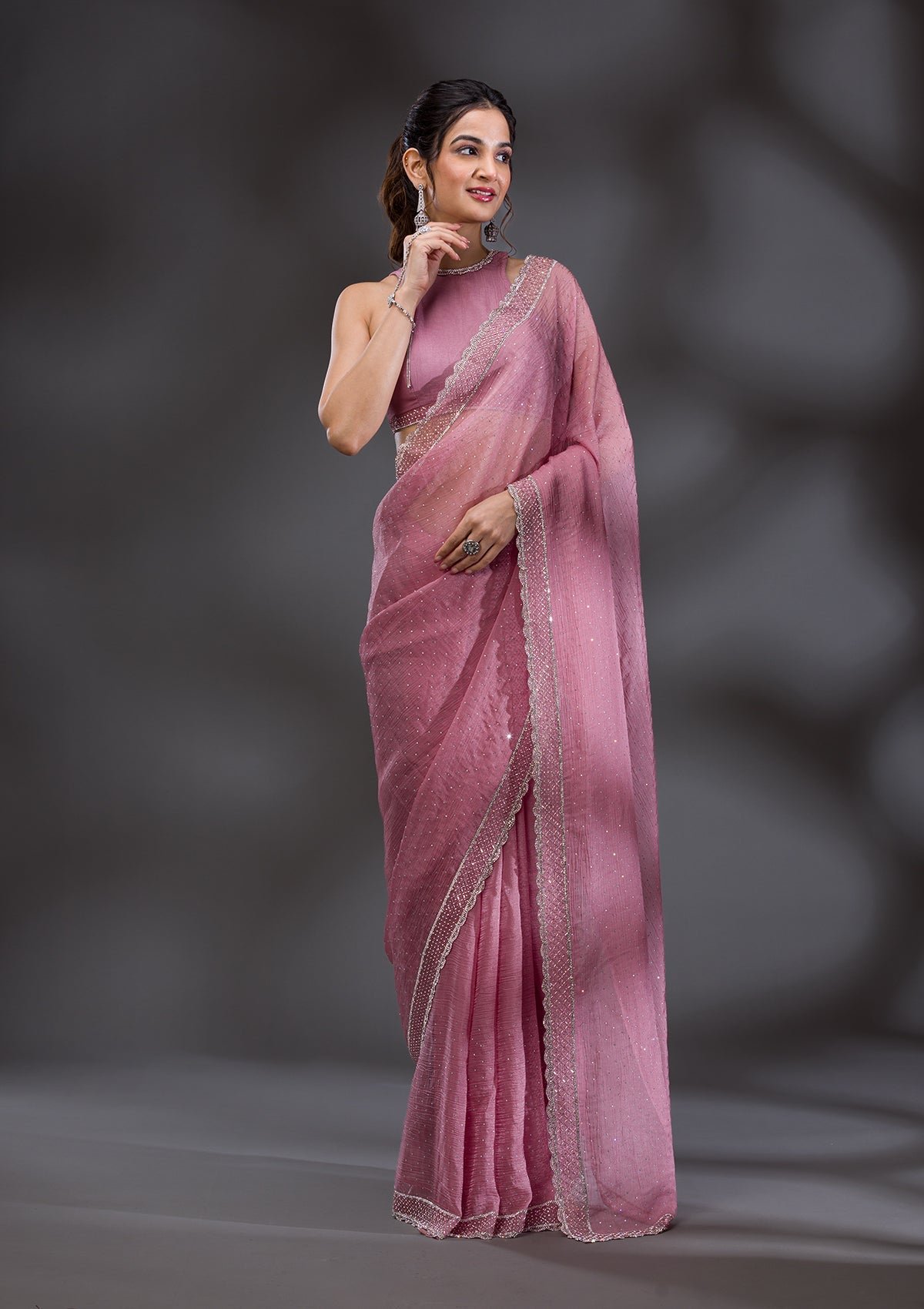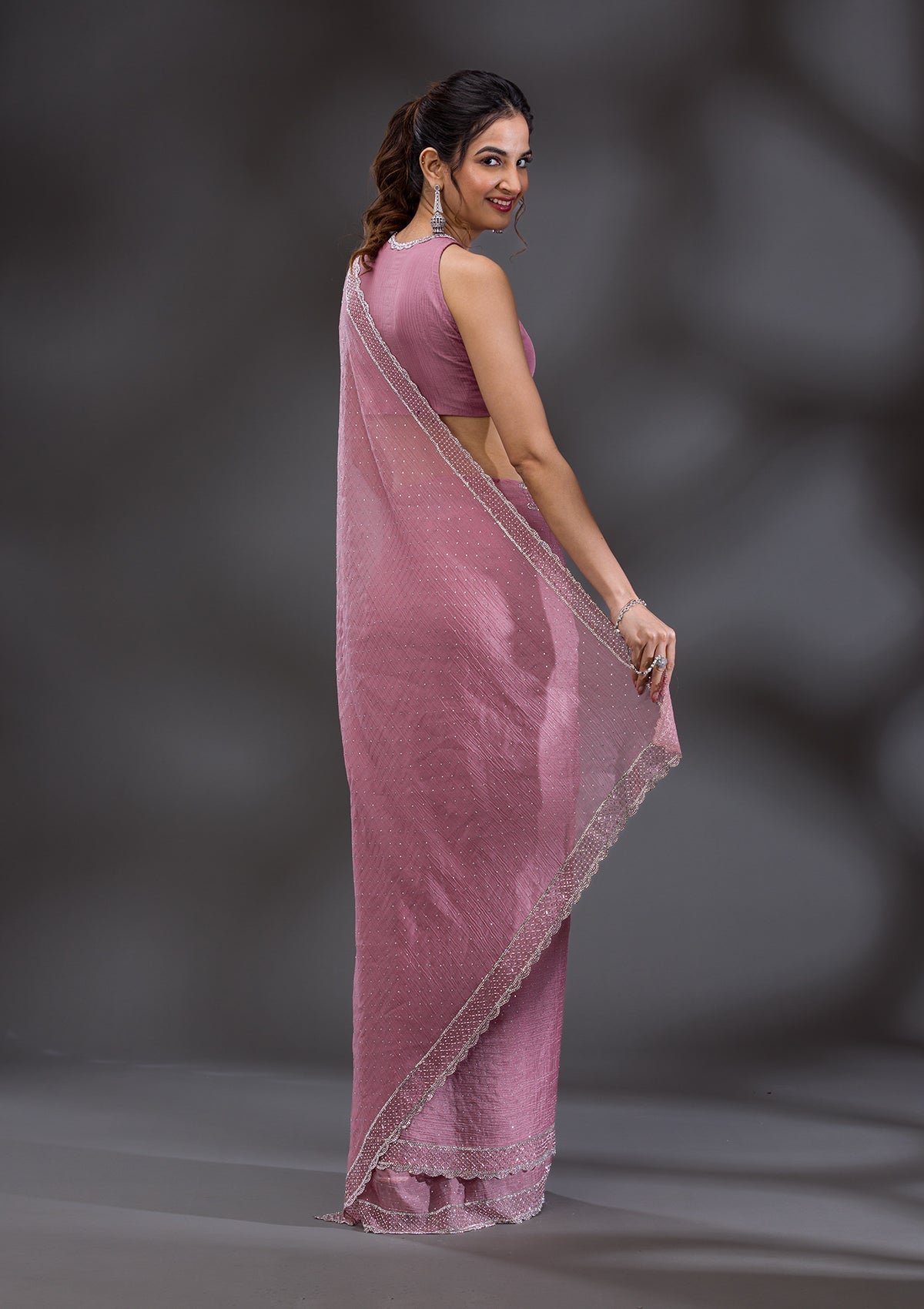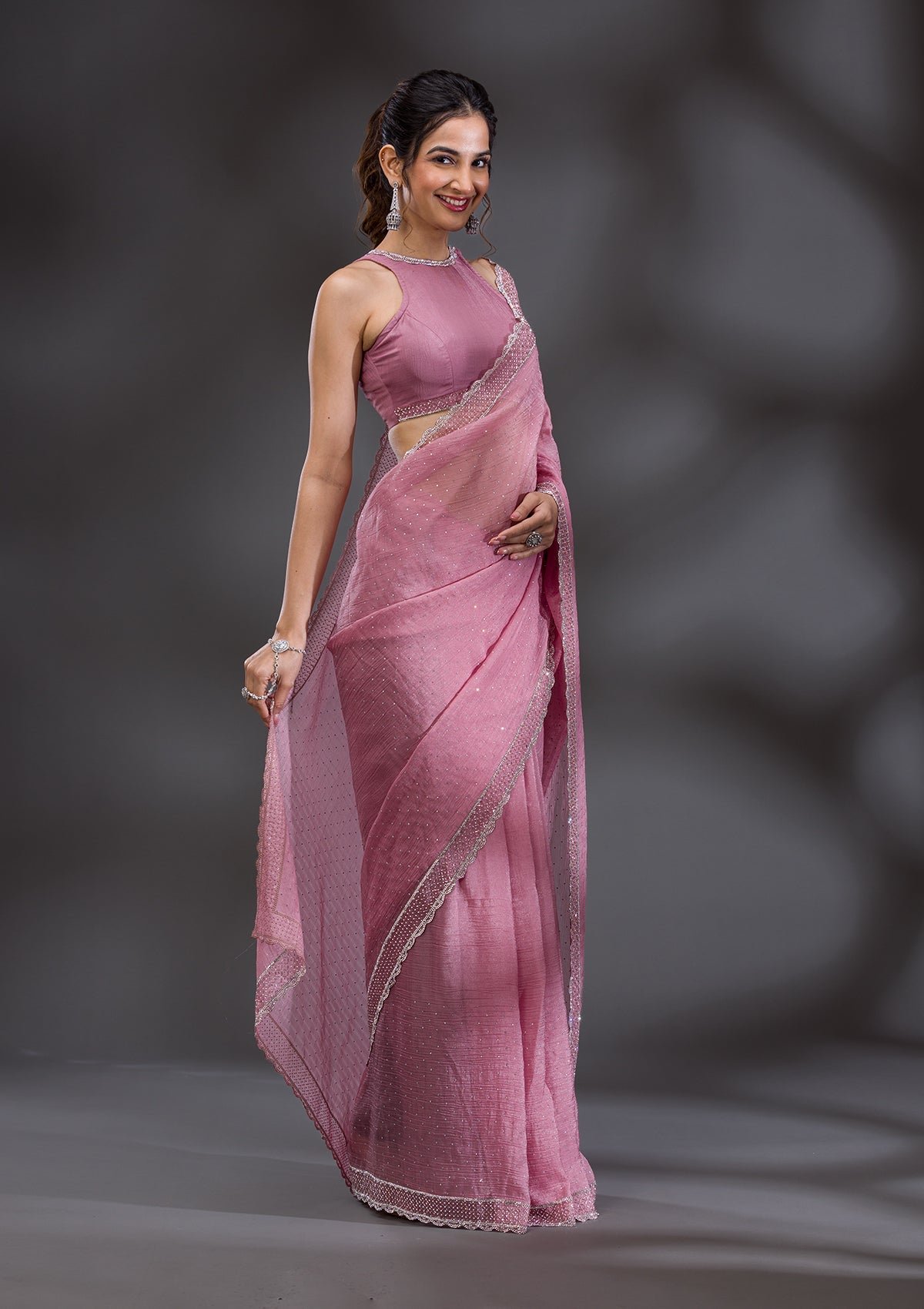 – Onion Pink Saree in Tissue fabric