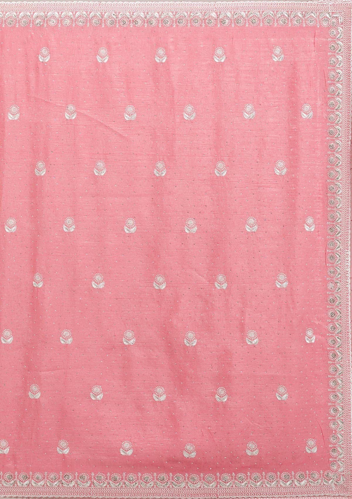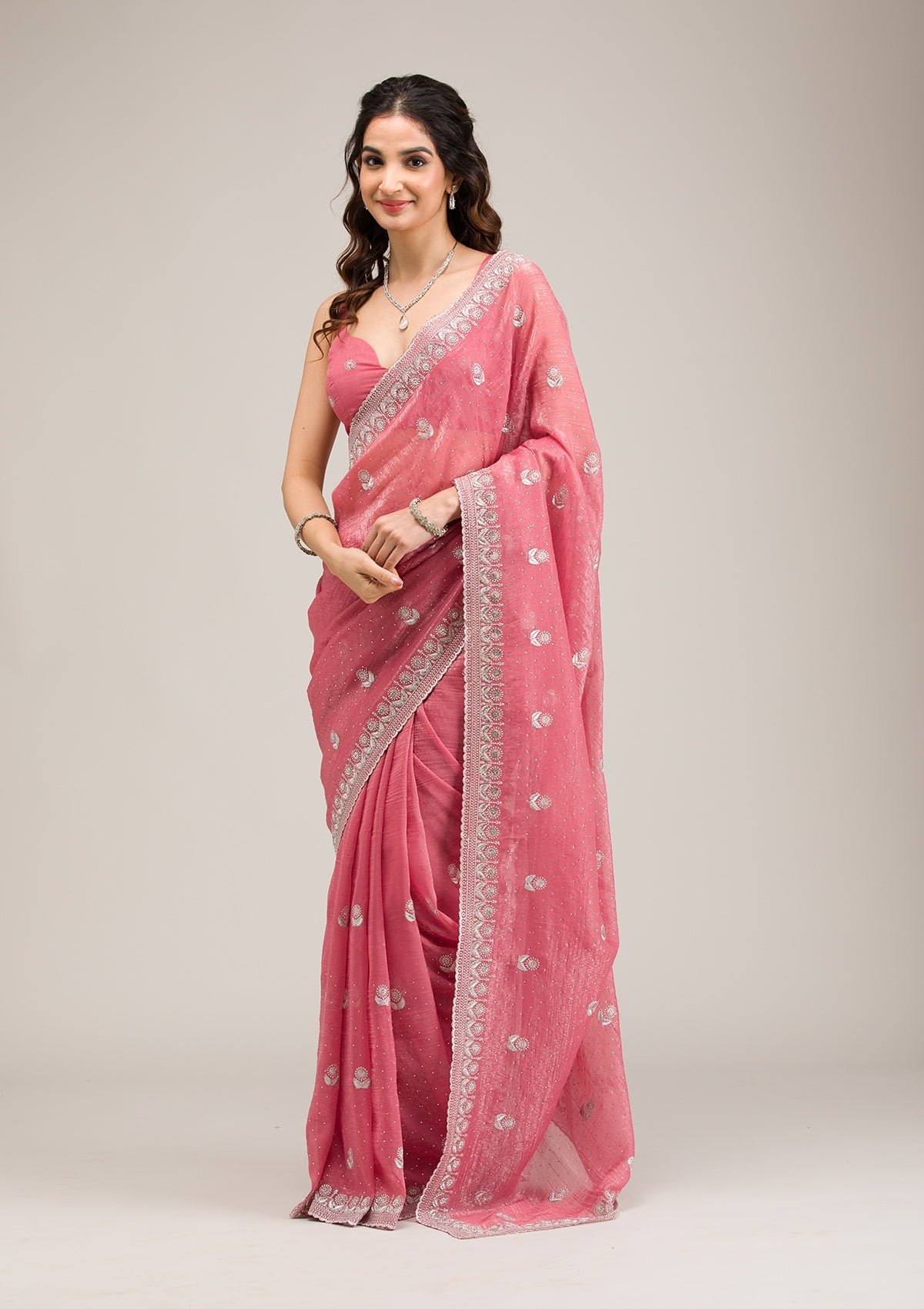 Elegant Pink Tissue Saree with Intricate Zari Work