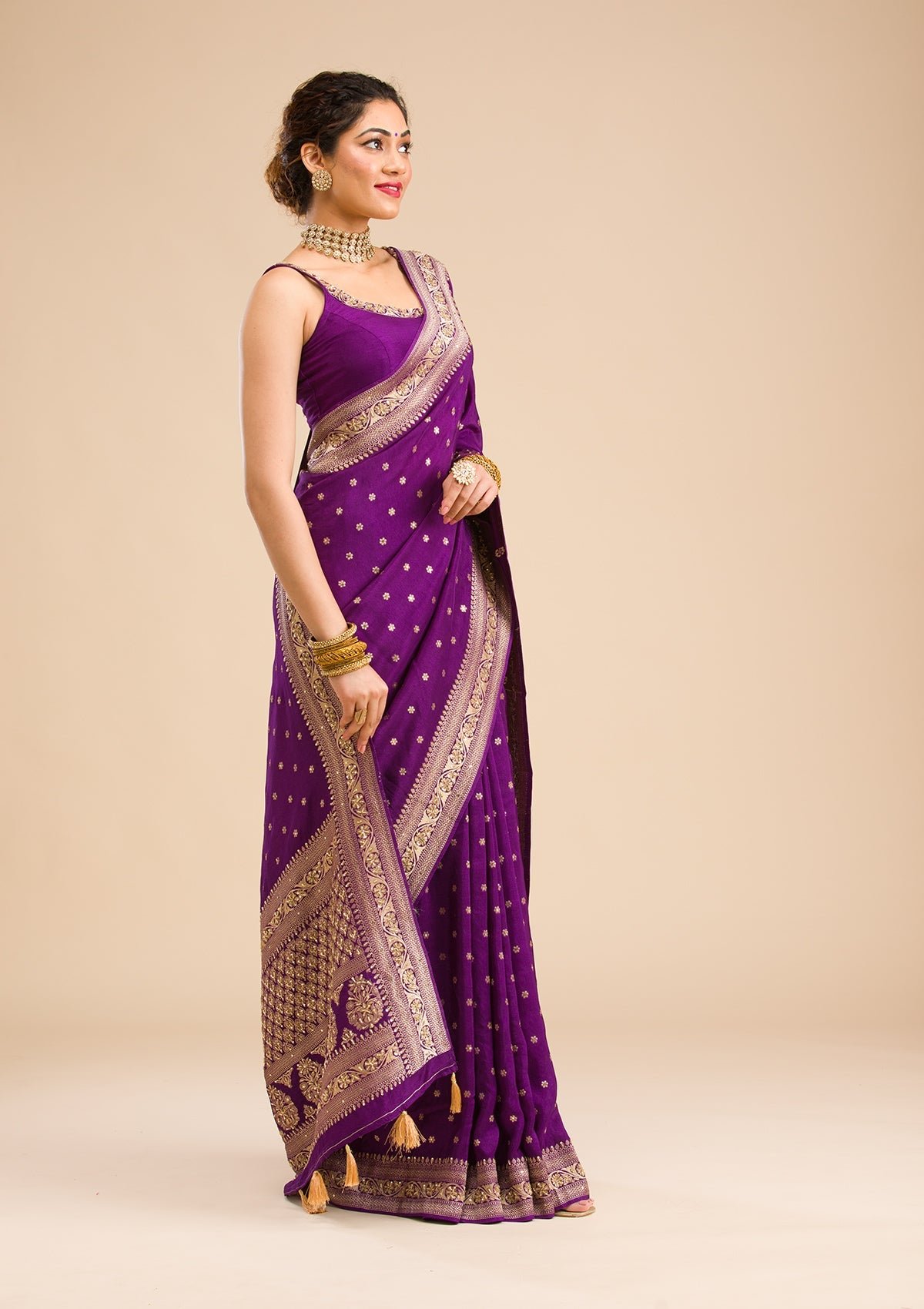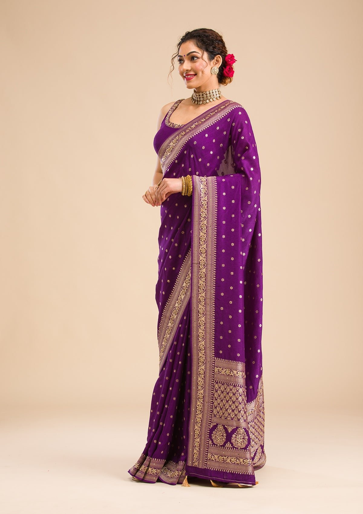– Purple Saree in Banarasi Silk fabric