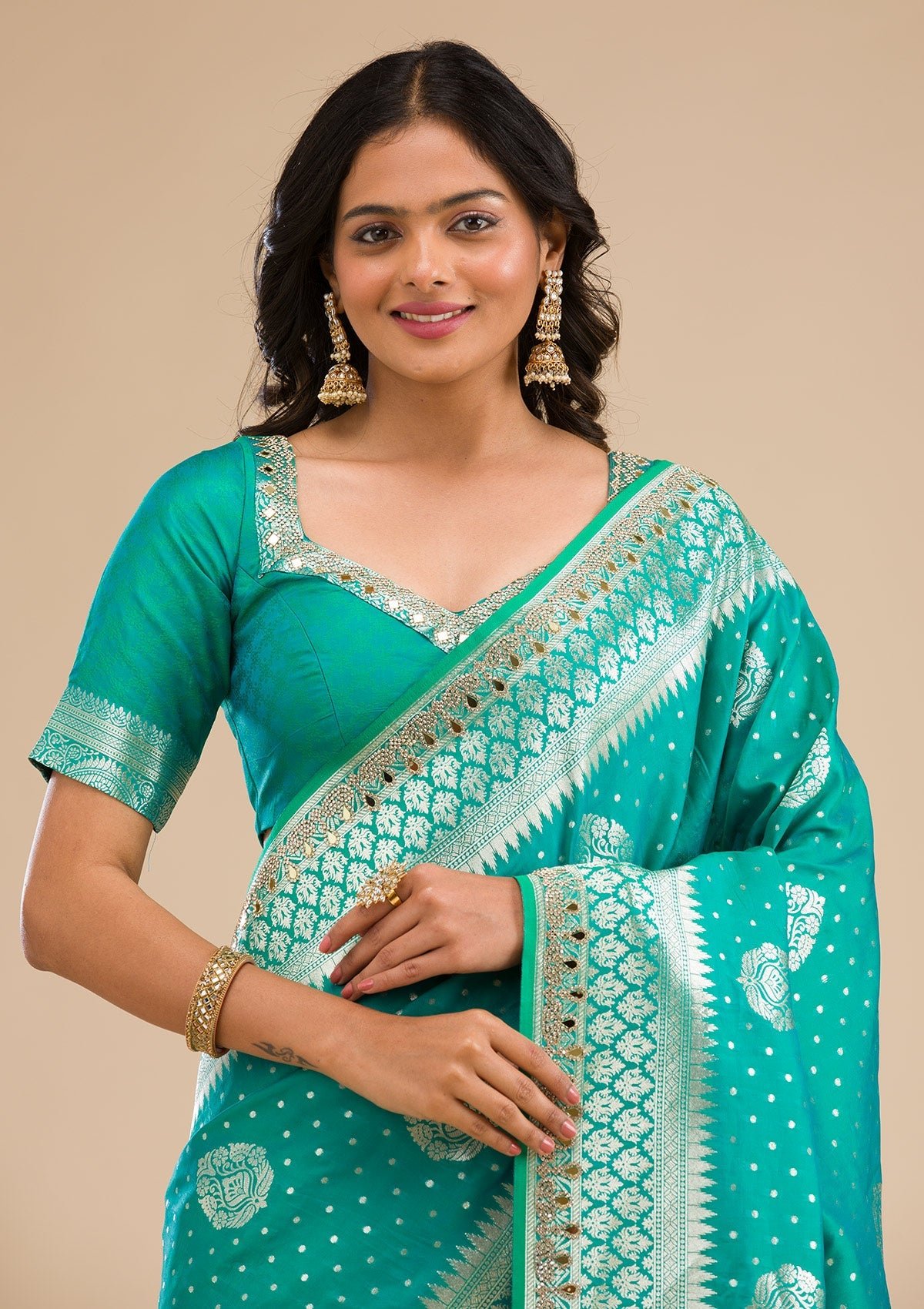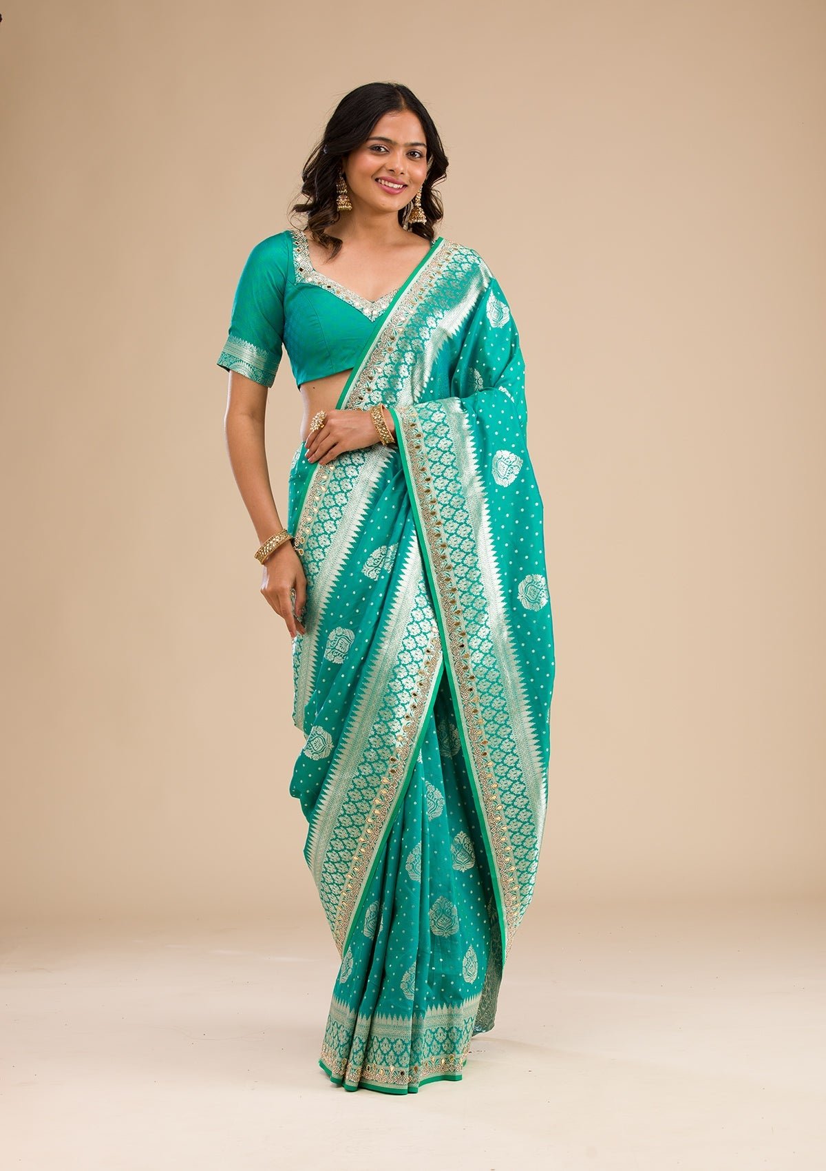 – Rama Green Saree in Banarasi Silk fabric