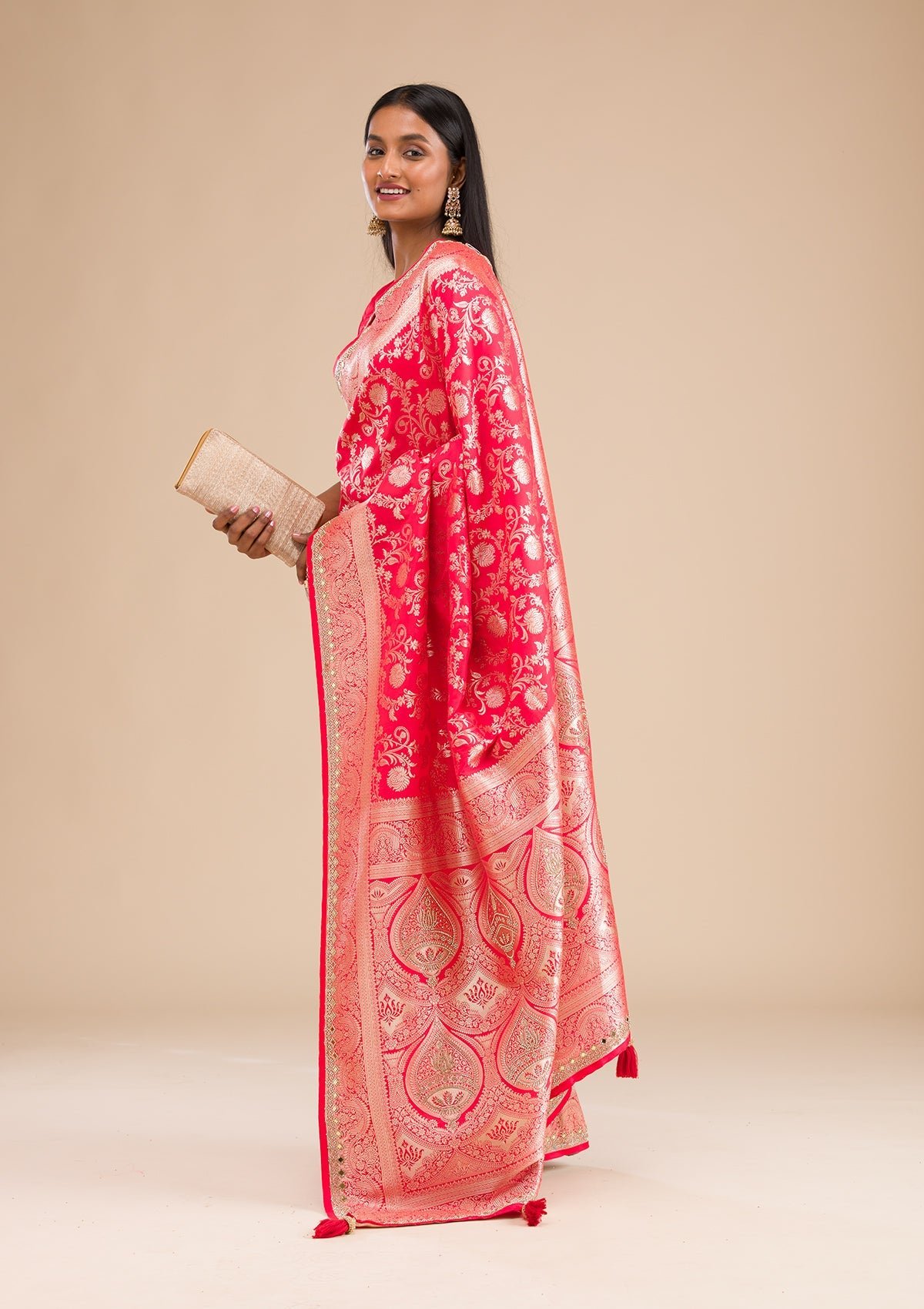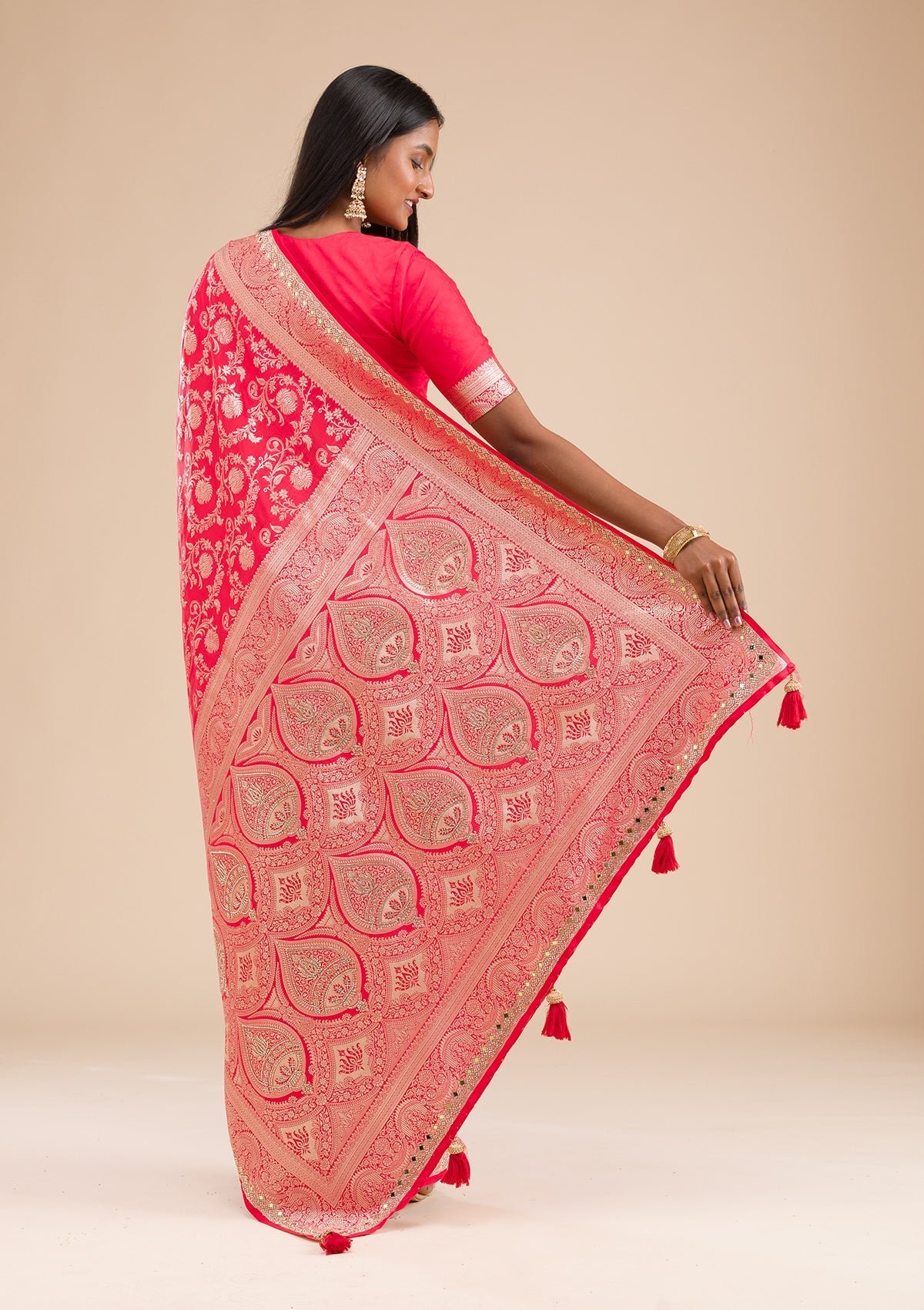 – Red Saree in Banarasi Silk fabric