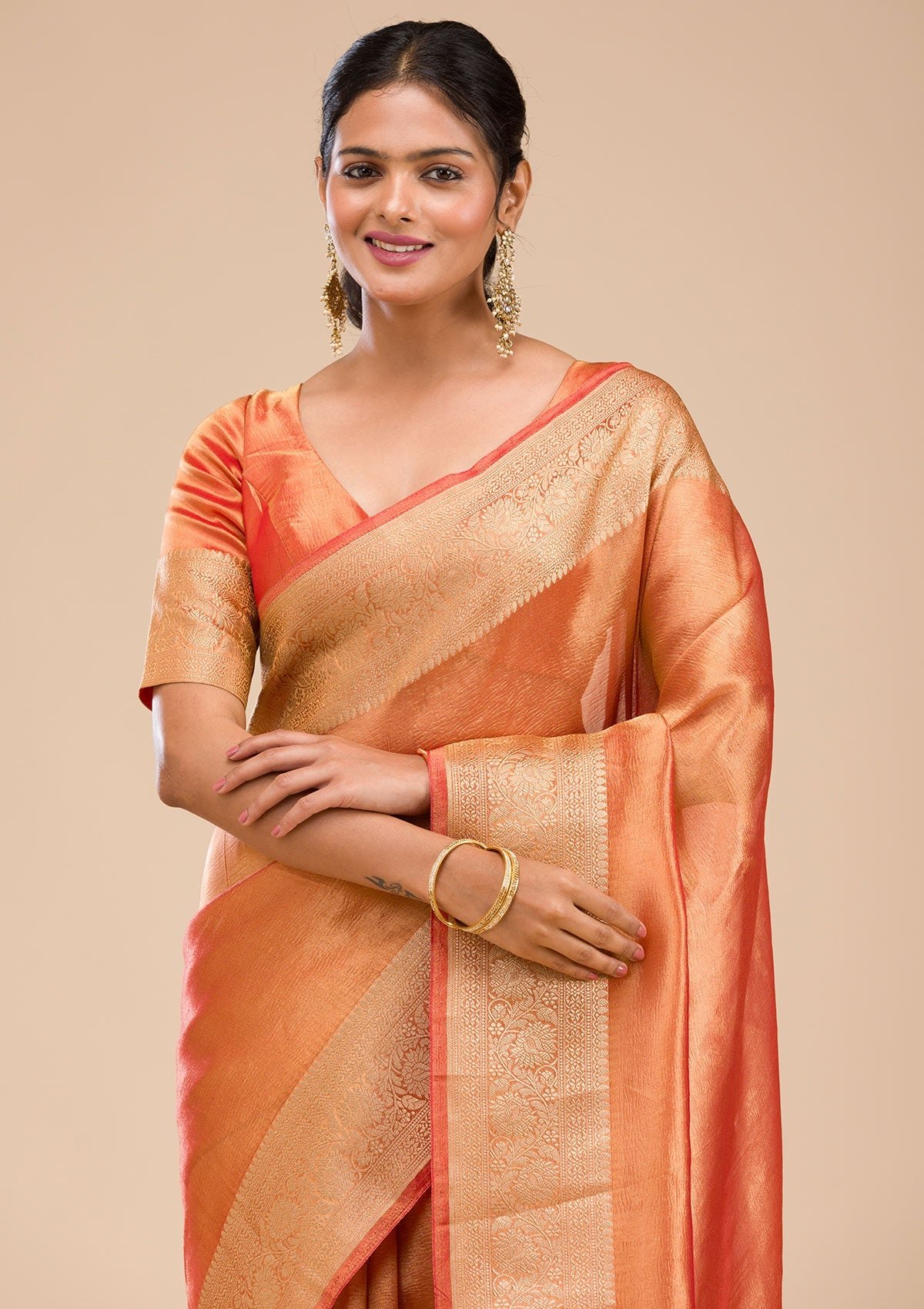 – Rust Saree in Tissue fabric