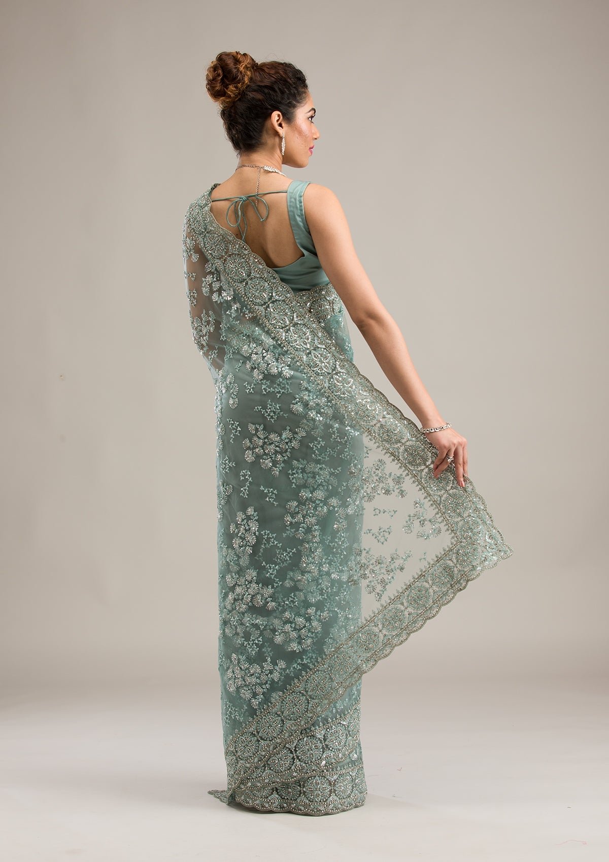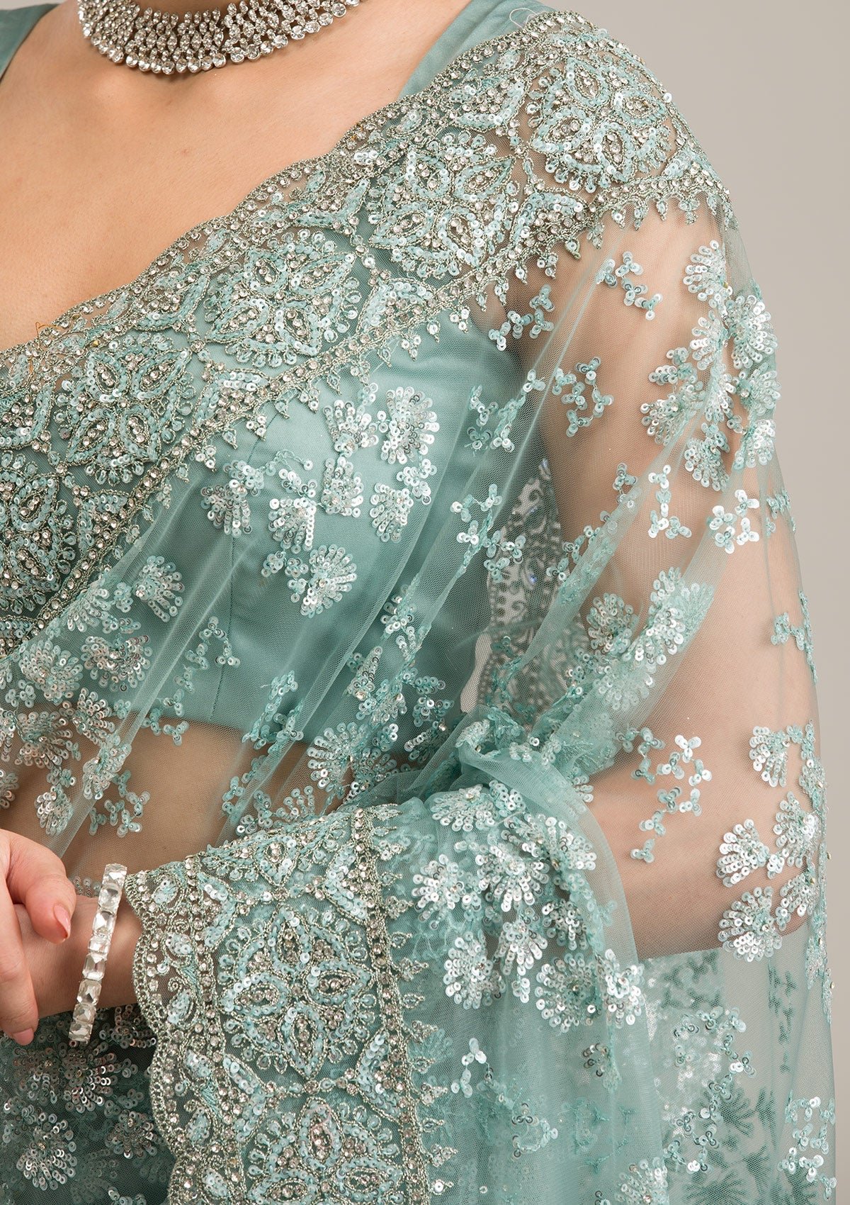 – Sea Green Saree in Net fabric