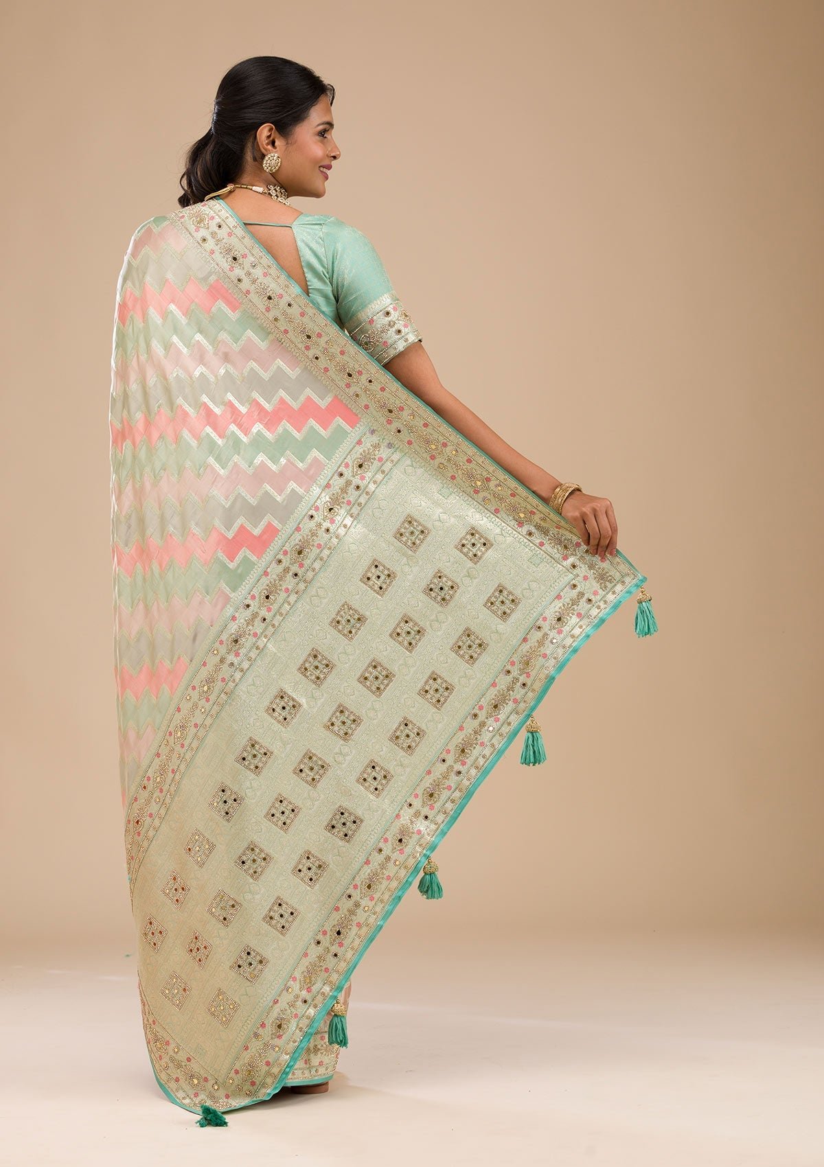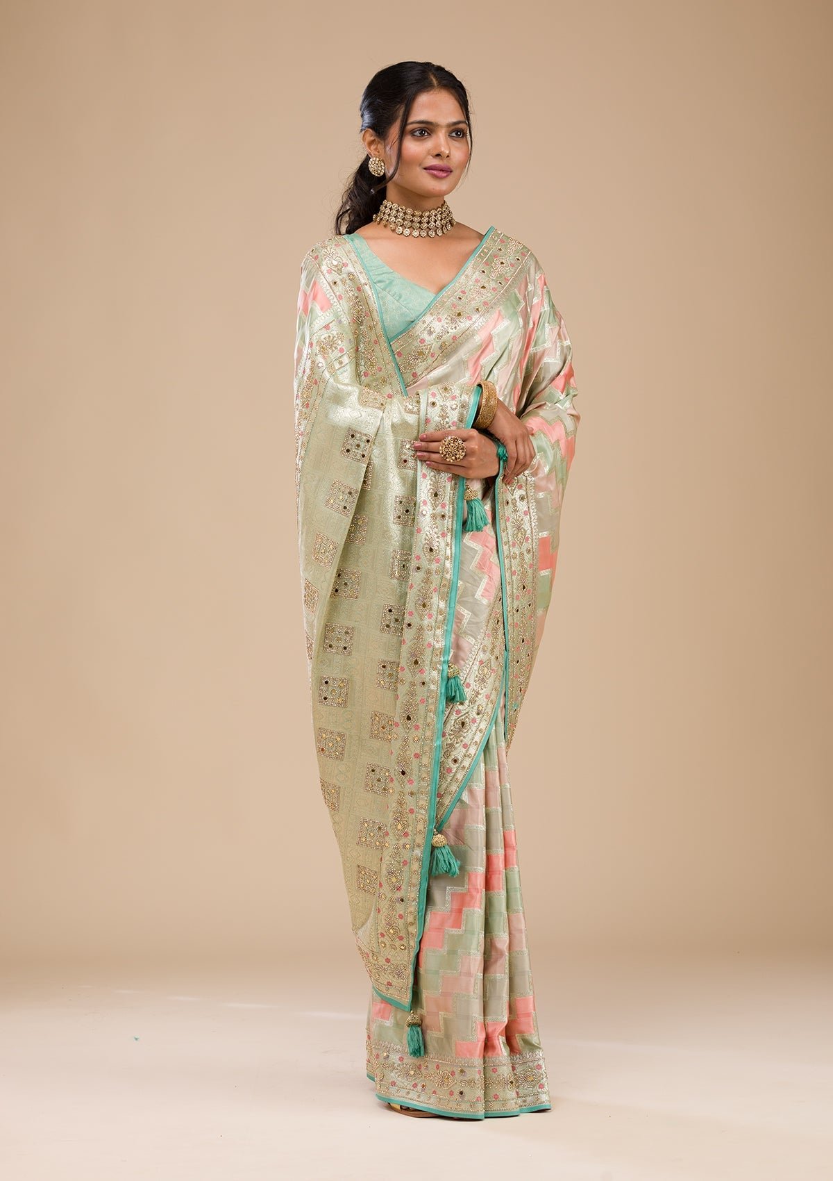 – Sea Green Saree in Soft Silk fabric
