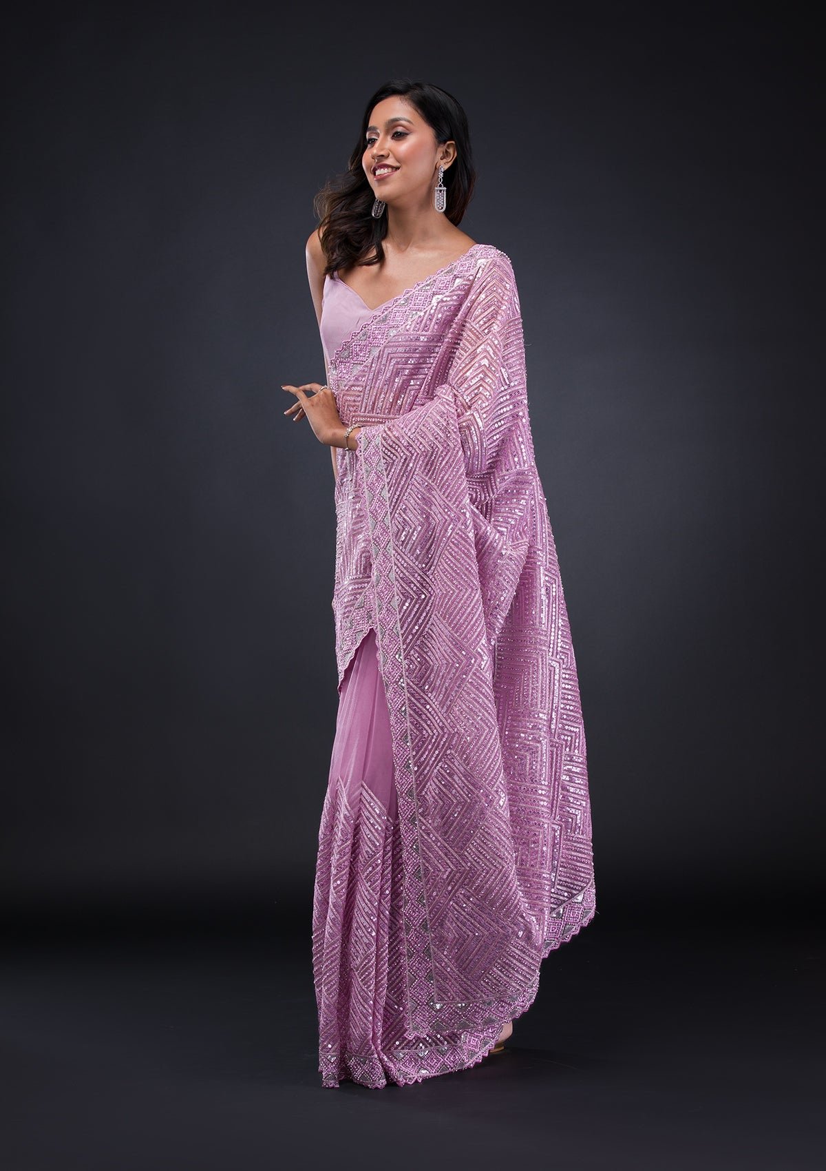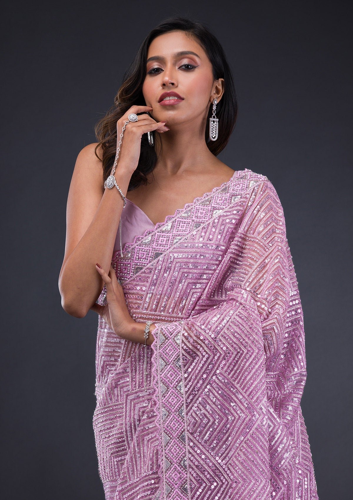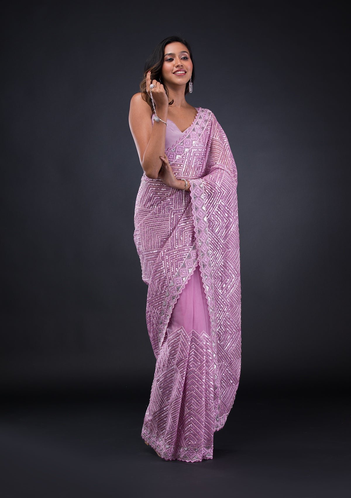 – Lavender Saree in Net fabric