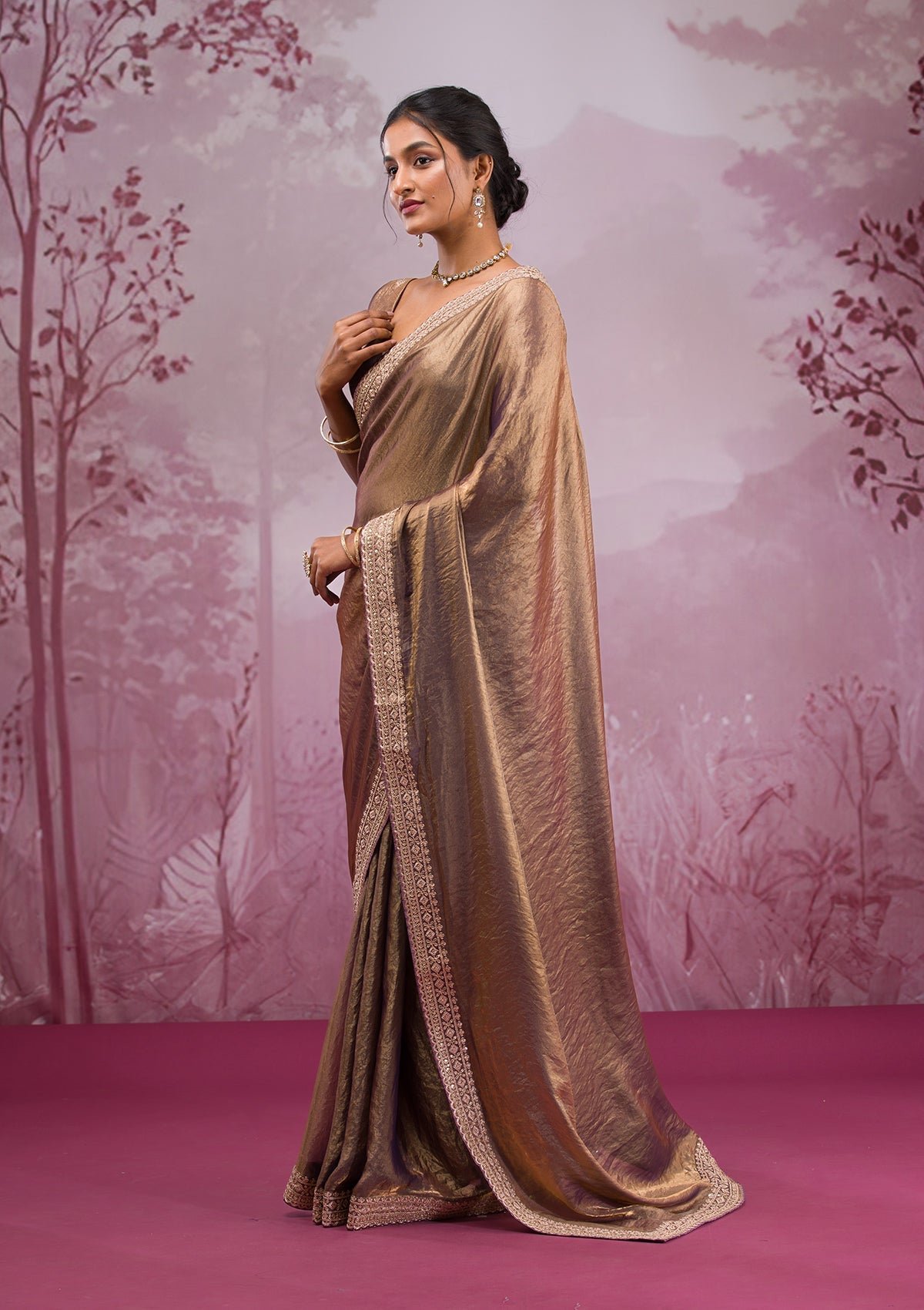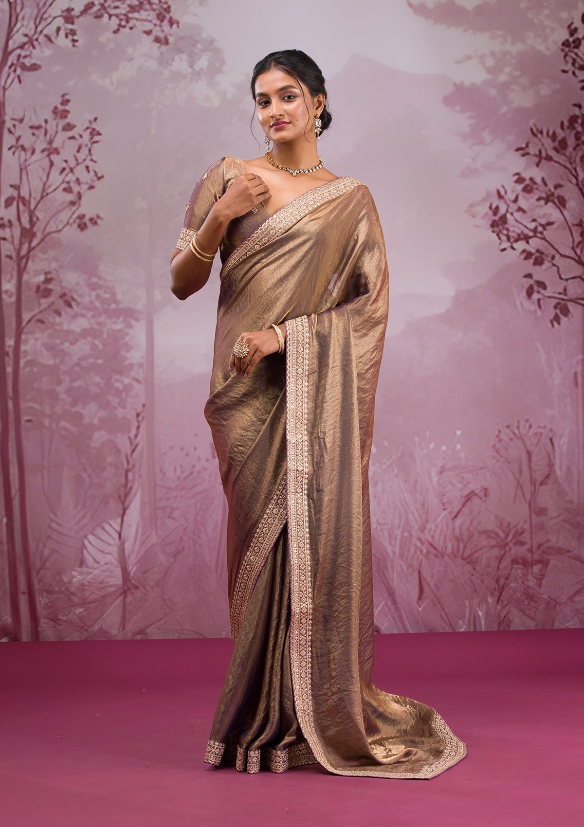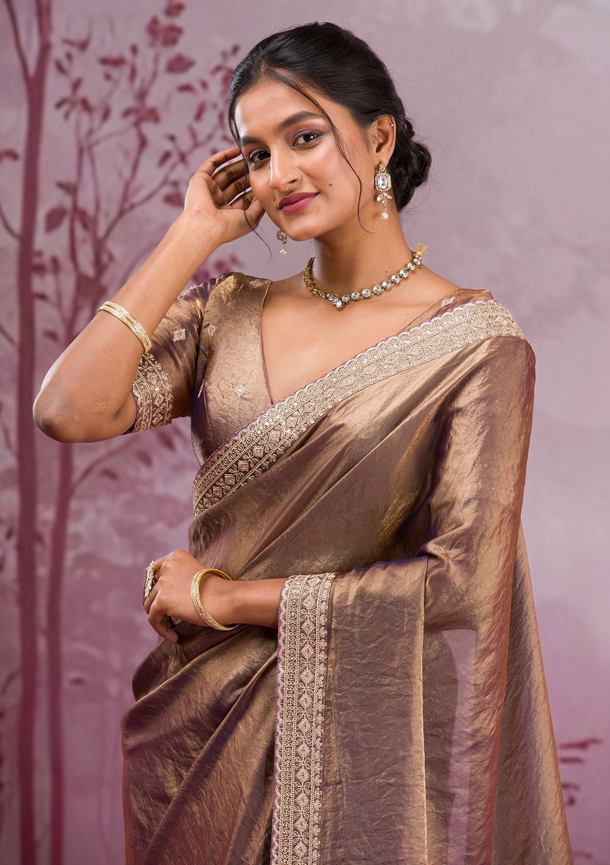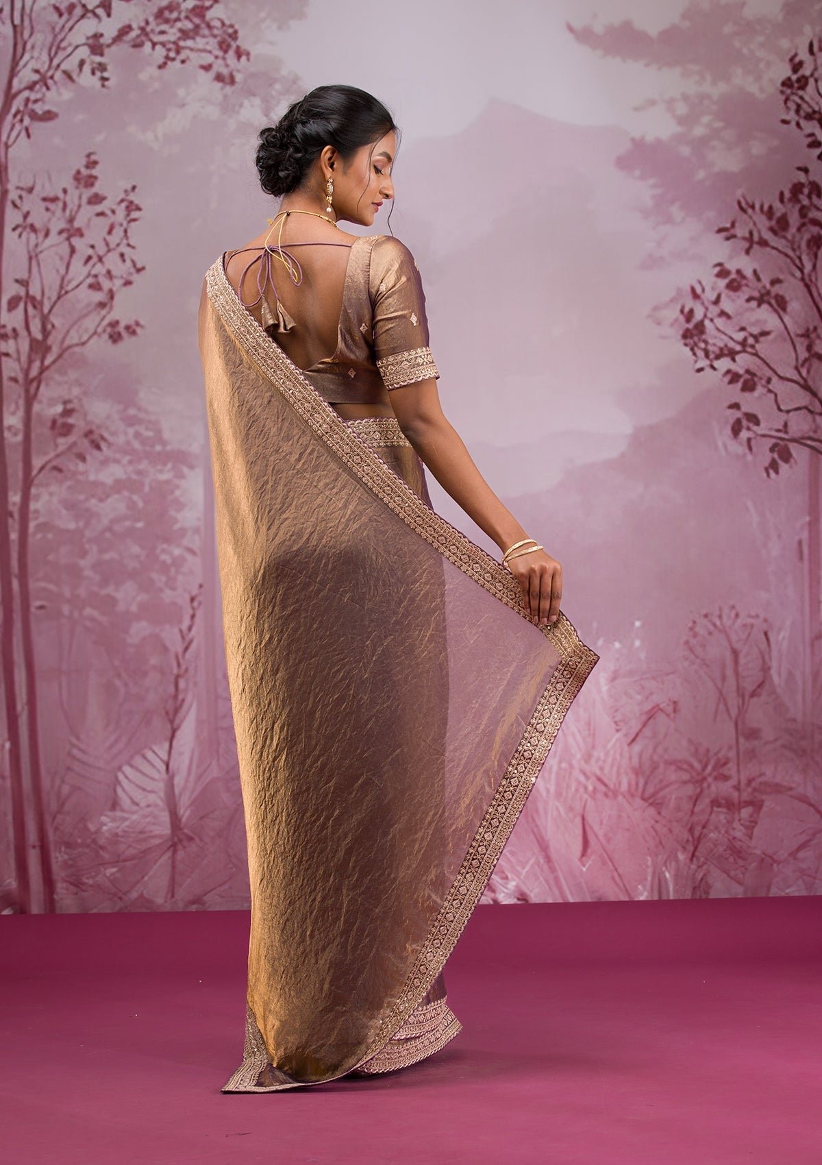 – Copper Saree in Tissue fabric