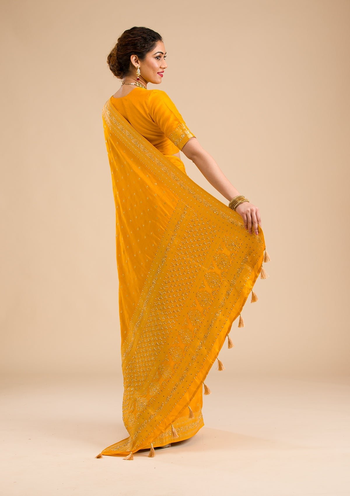 – Mustard Saree in Banarasi Silk fabric