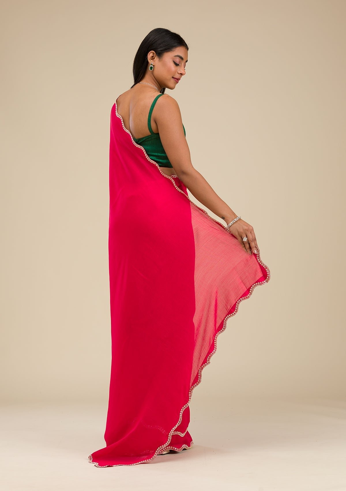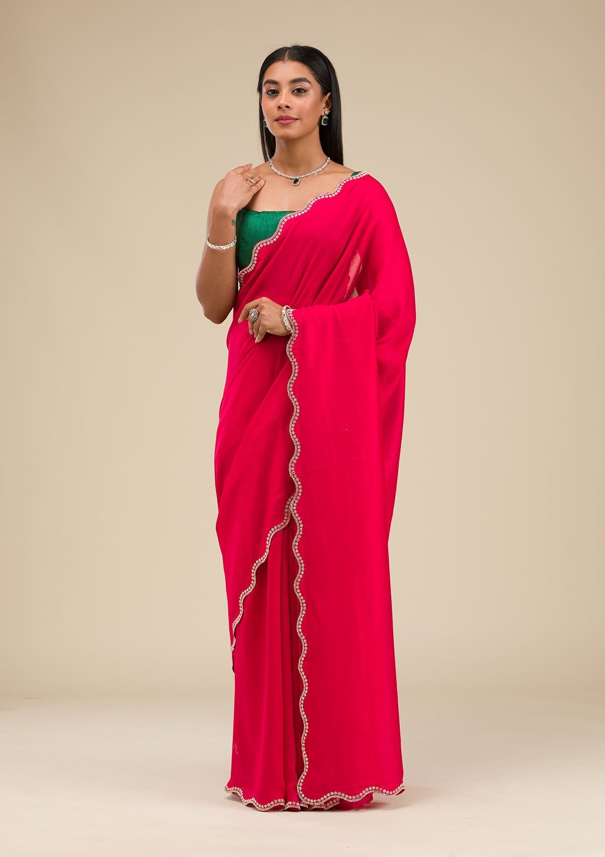 – The Saree is elevated with Stonework embroidery