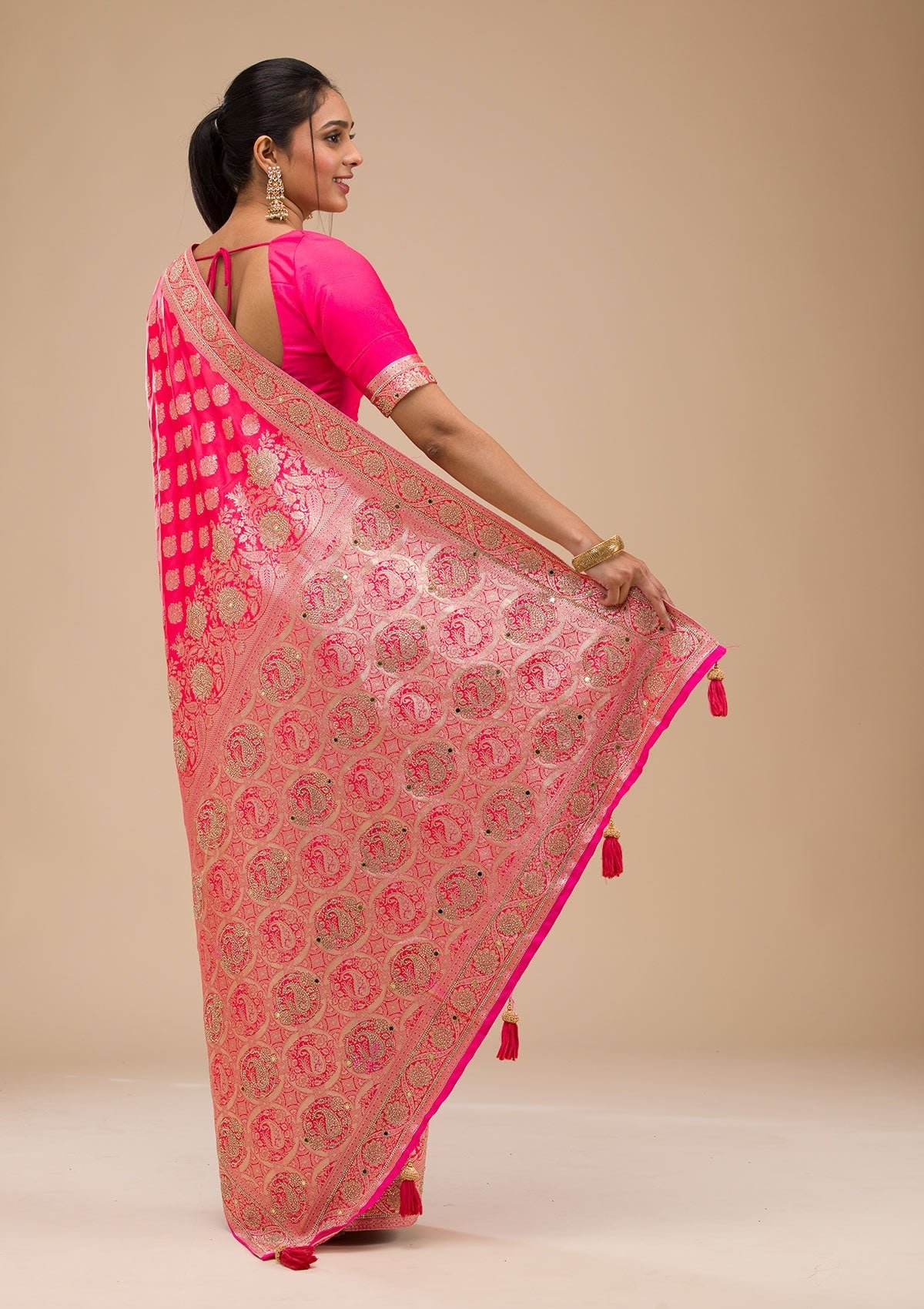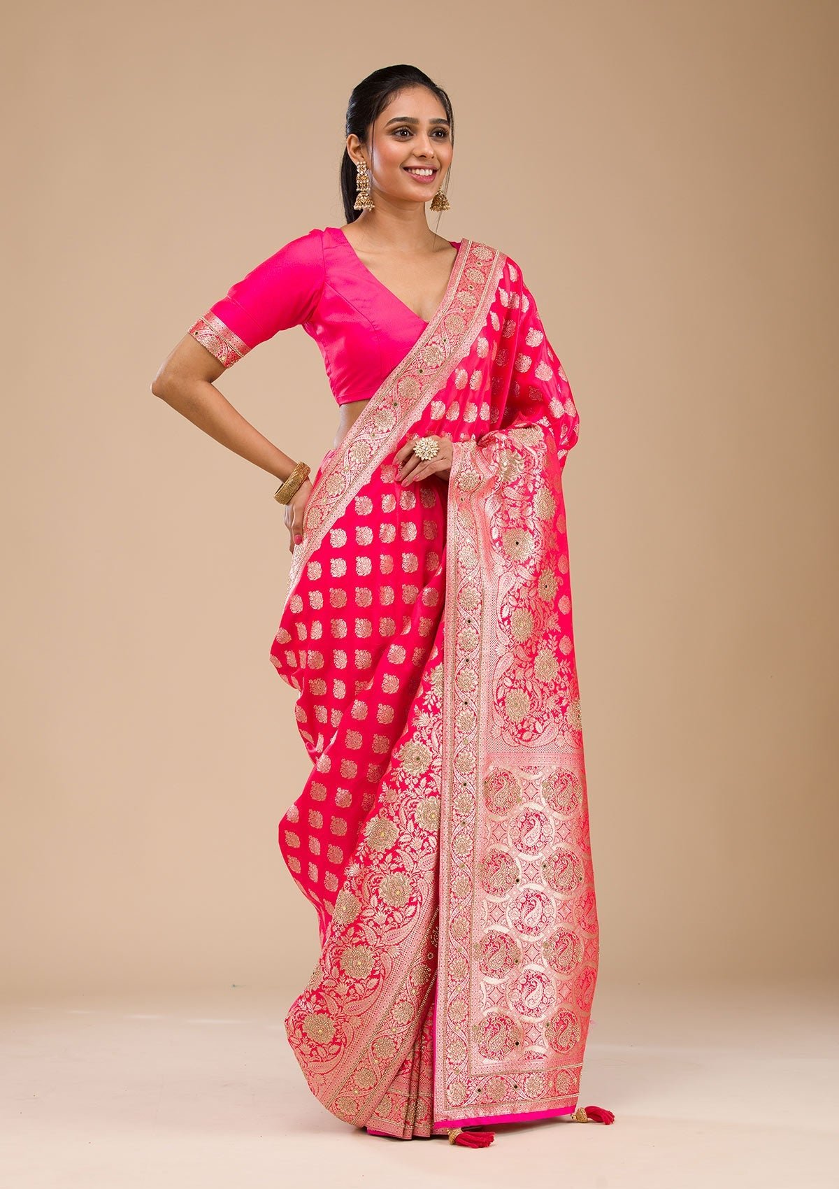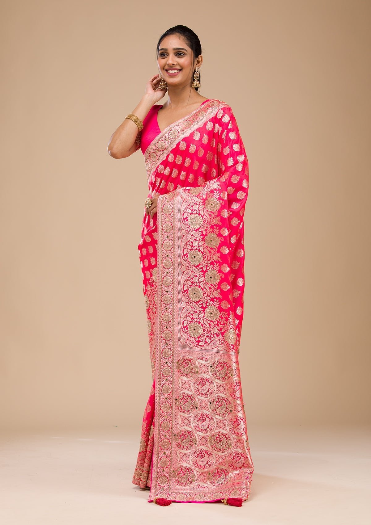 – Rani Pink Saree in Raw Silk fabric