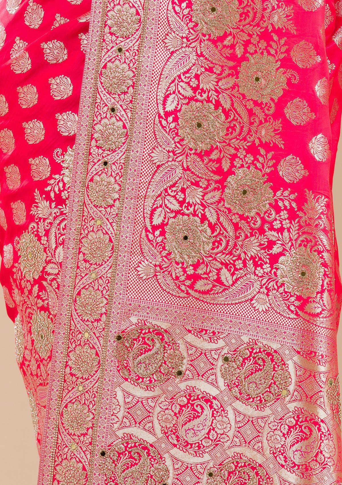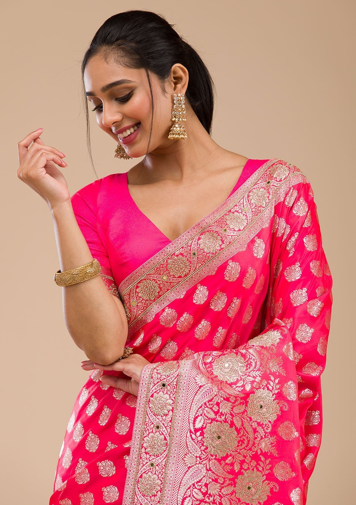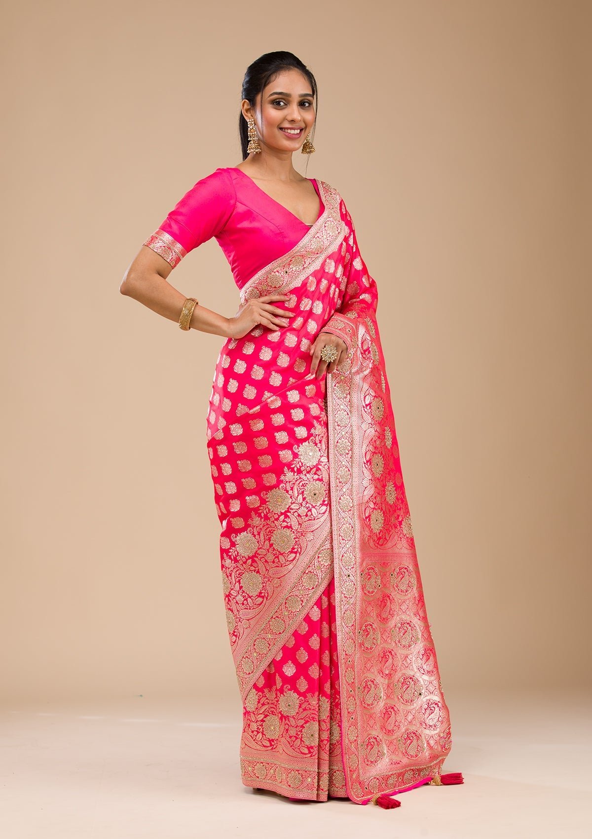 – Rani Pink Saree in Raw Silk fabric