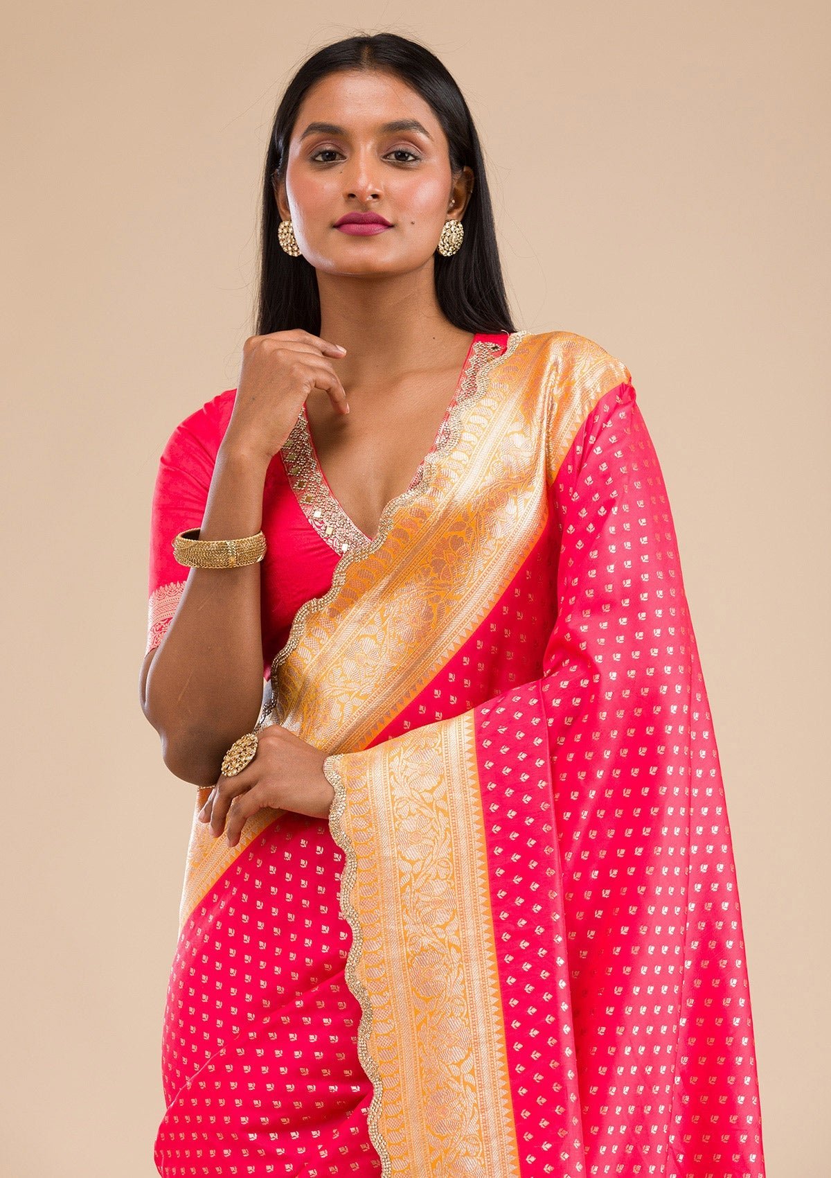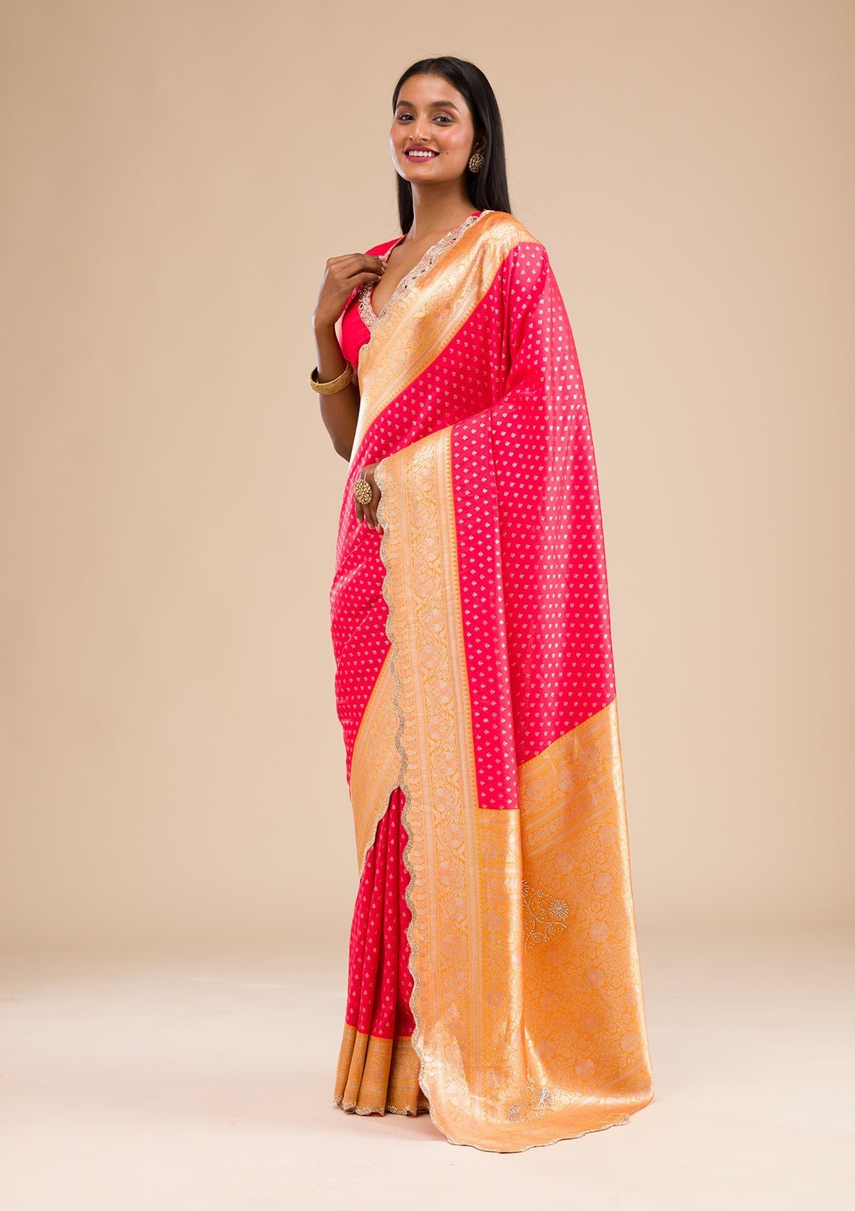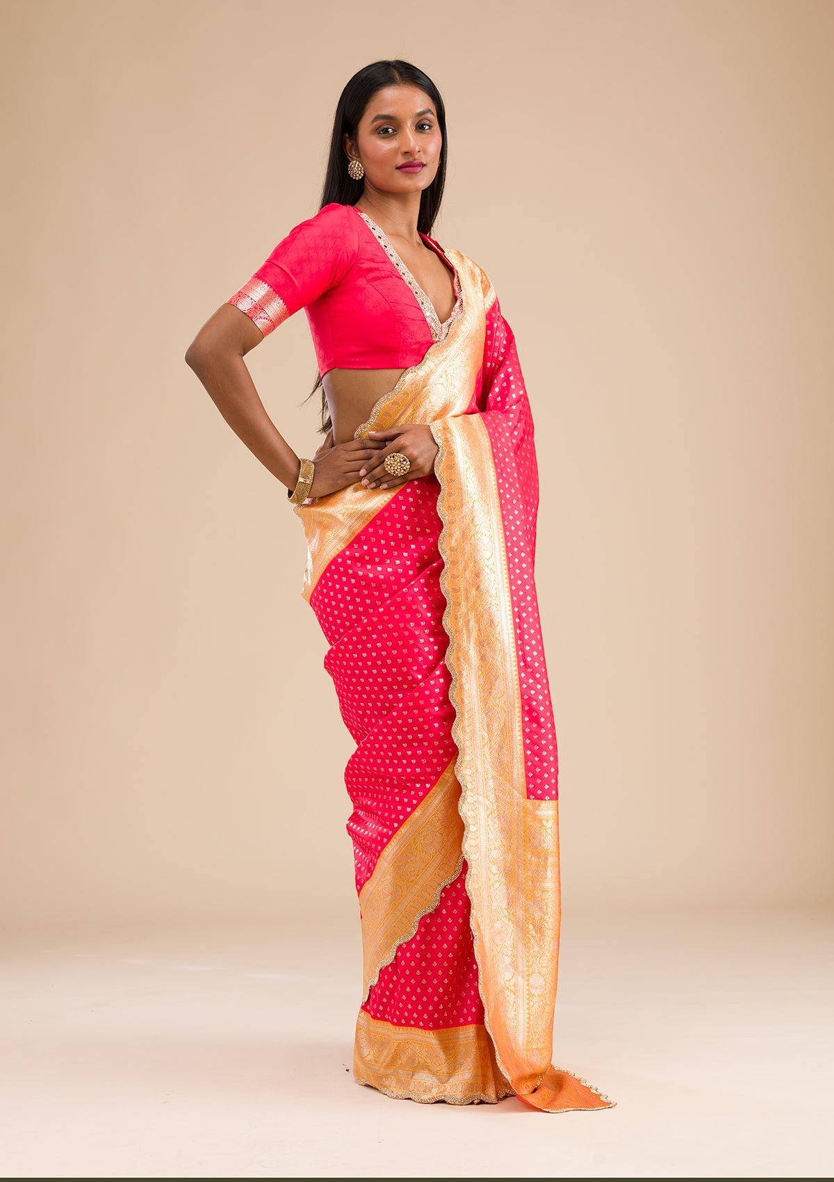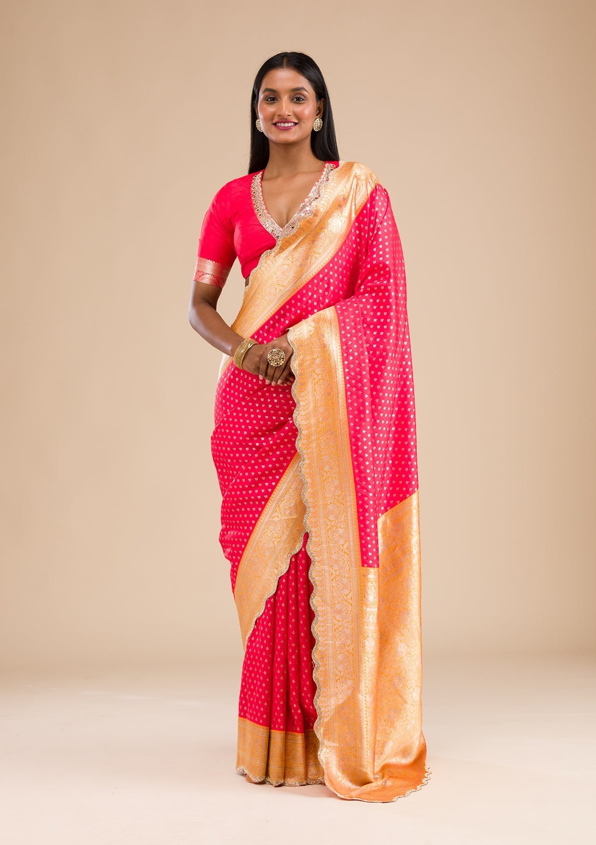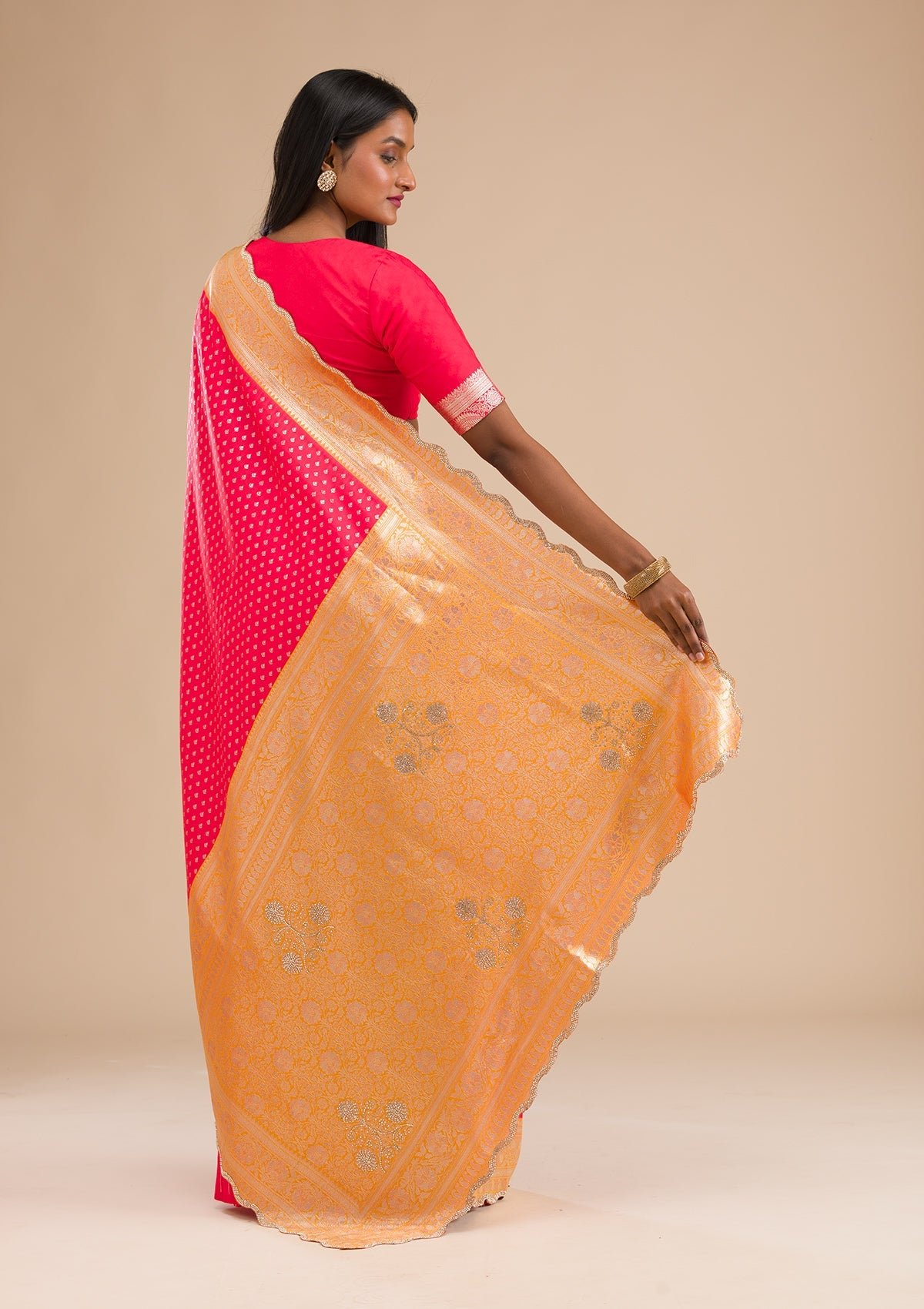 – Red Saree in Banarasi Silk fabric