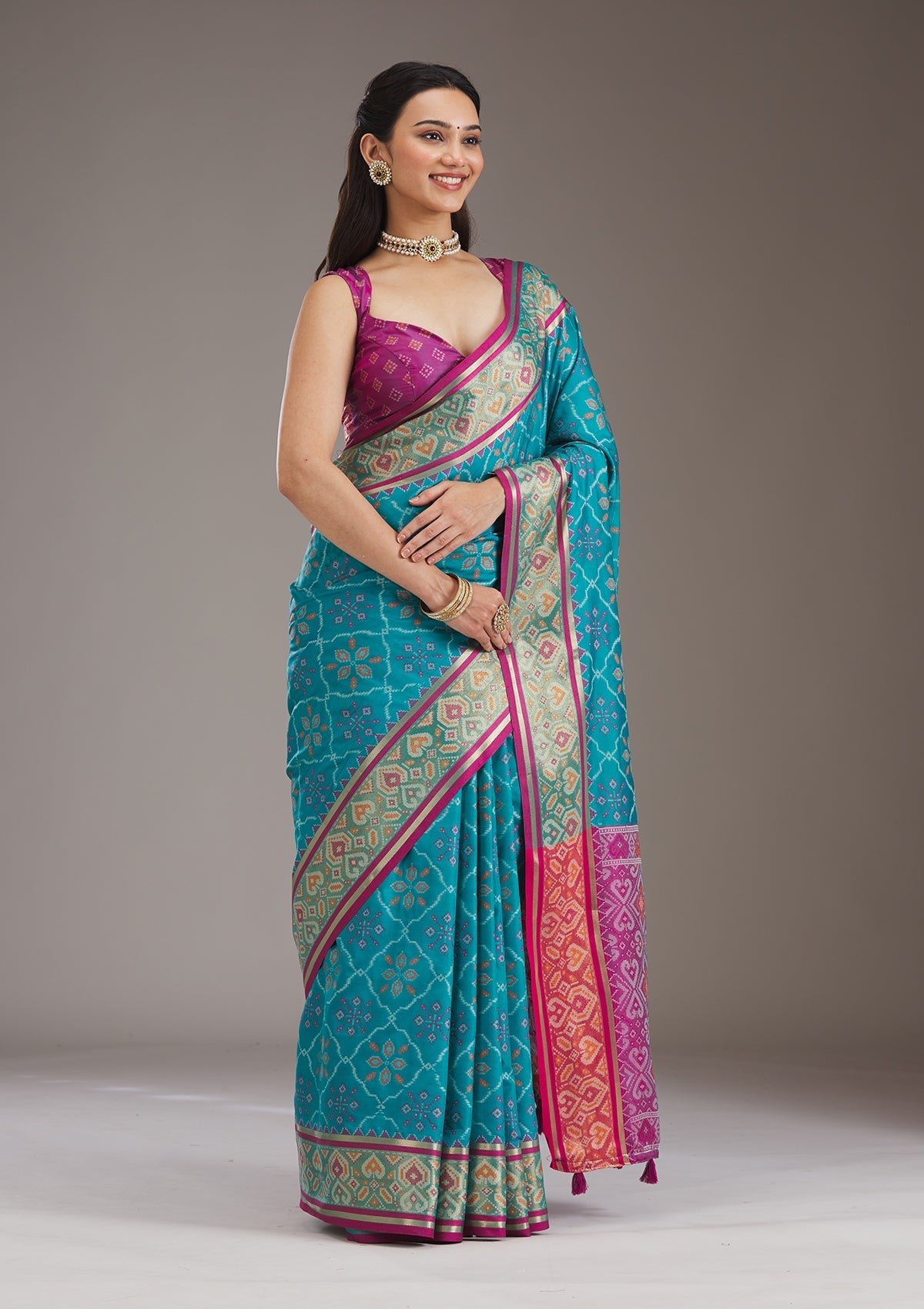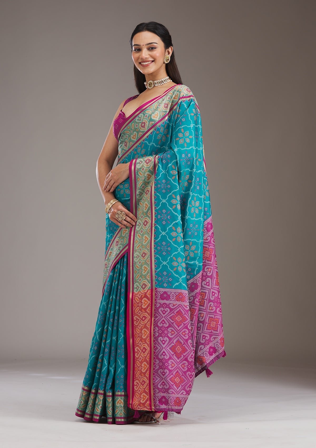 – The Saree is elevated with Prints