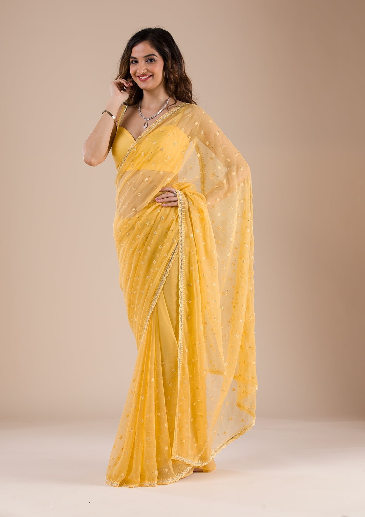 – Yellow Saree in Chiffon fabric