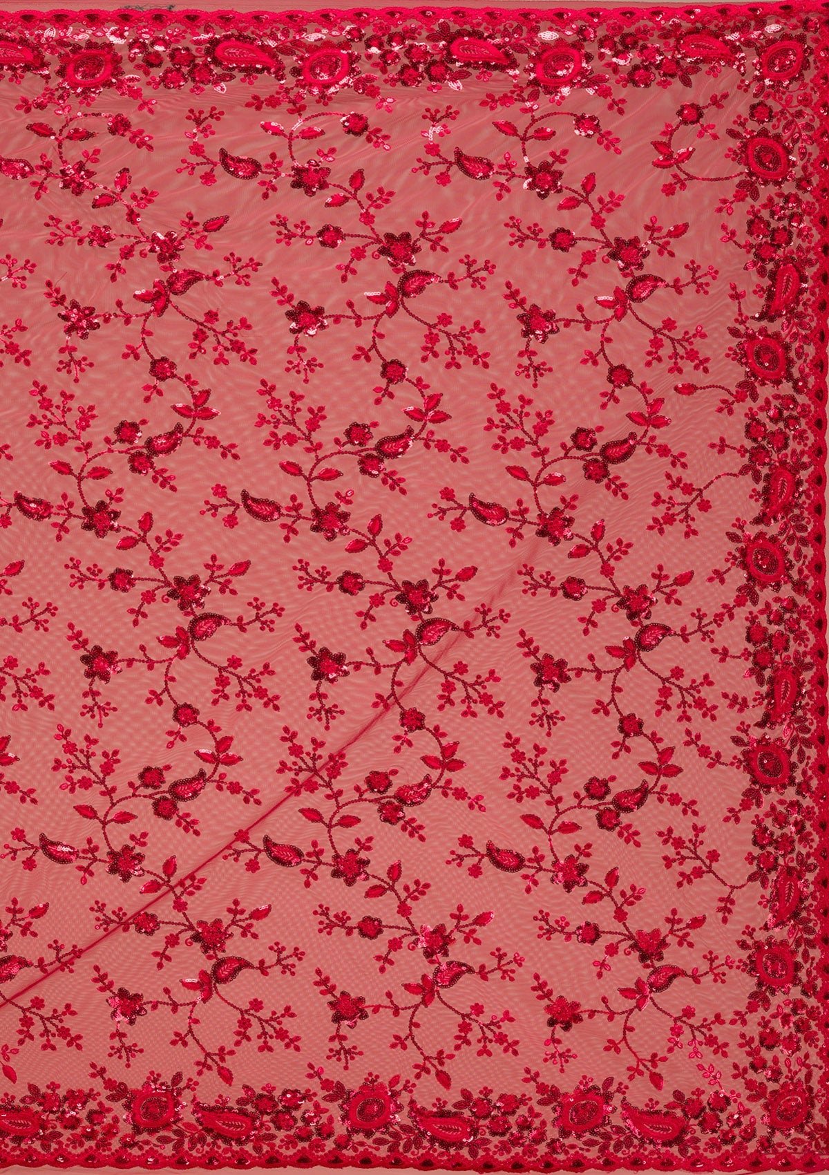 Glistening Red Sequined Net Saree