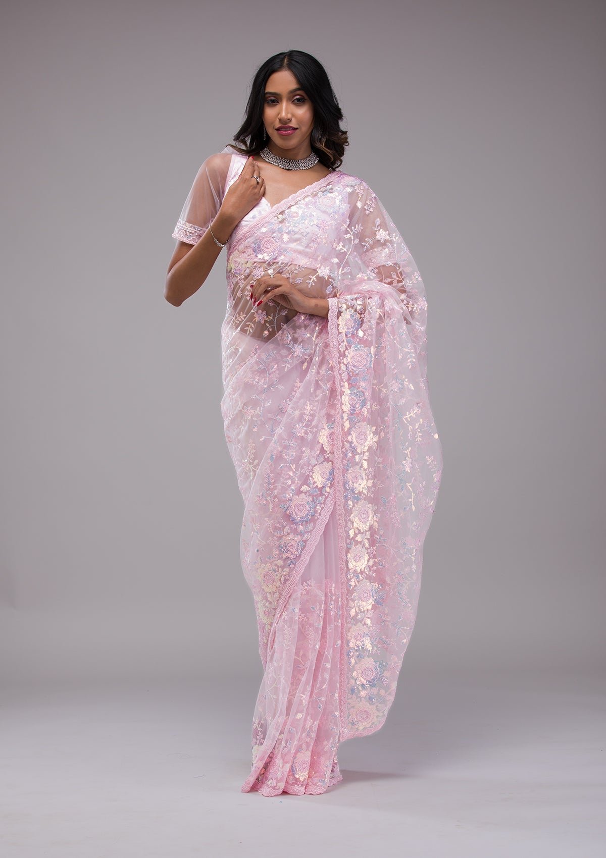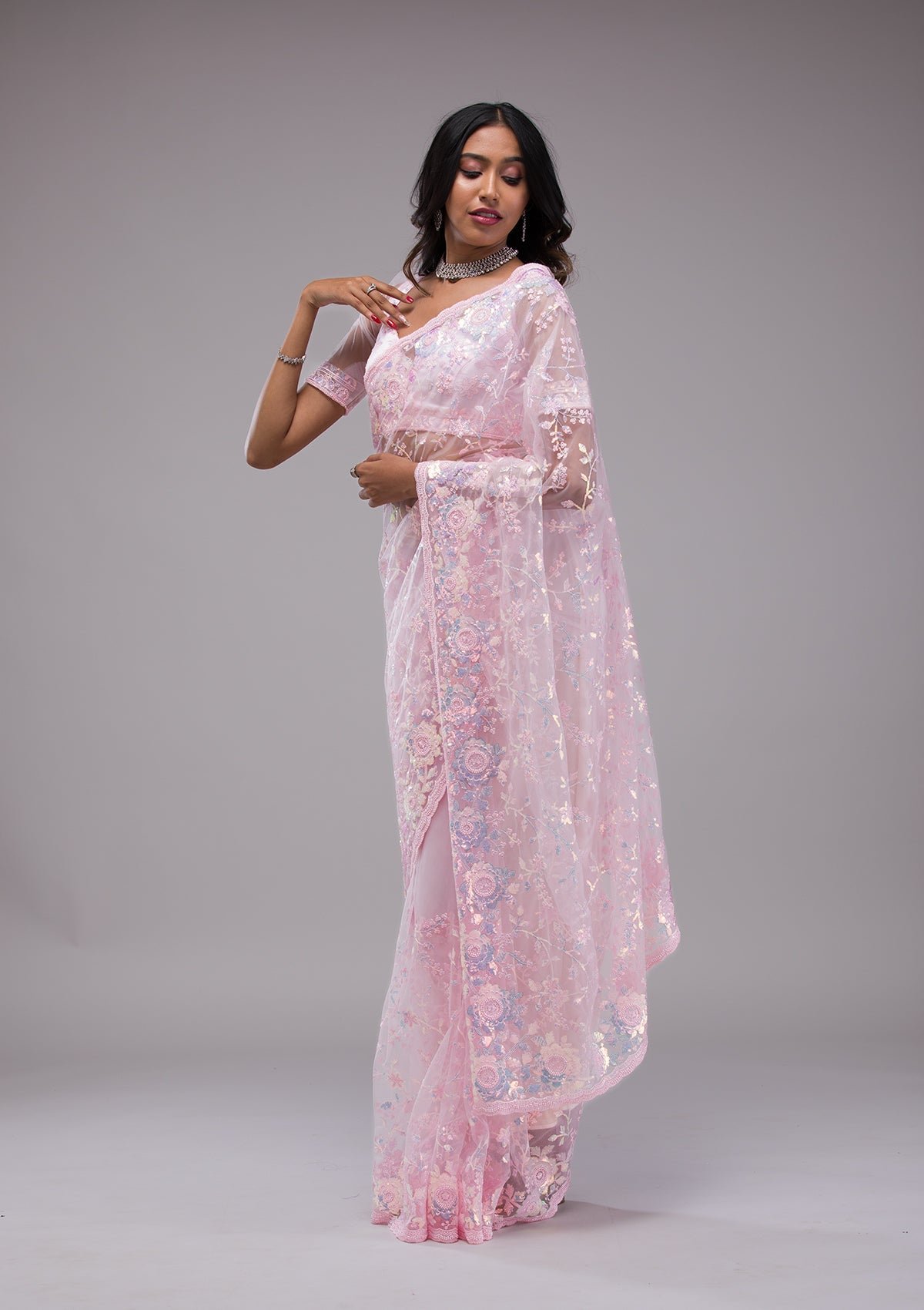 – Baby Pink Saree in Tissue fabric