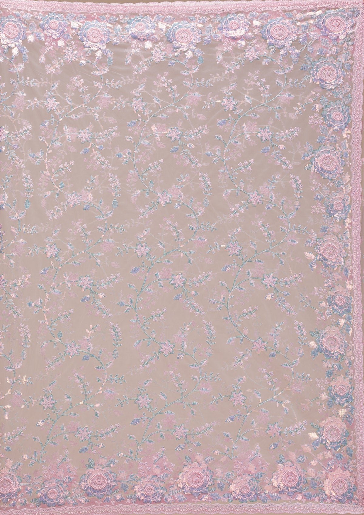 Sparkling Baby Pink Sequined Tissue Saree