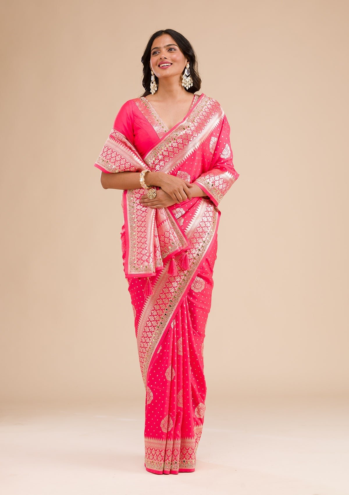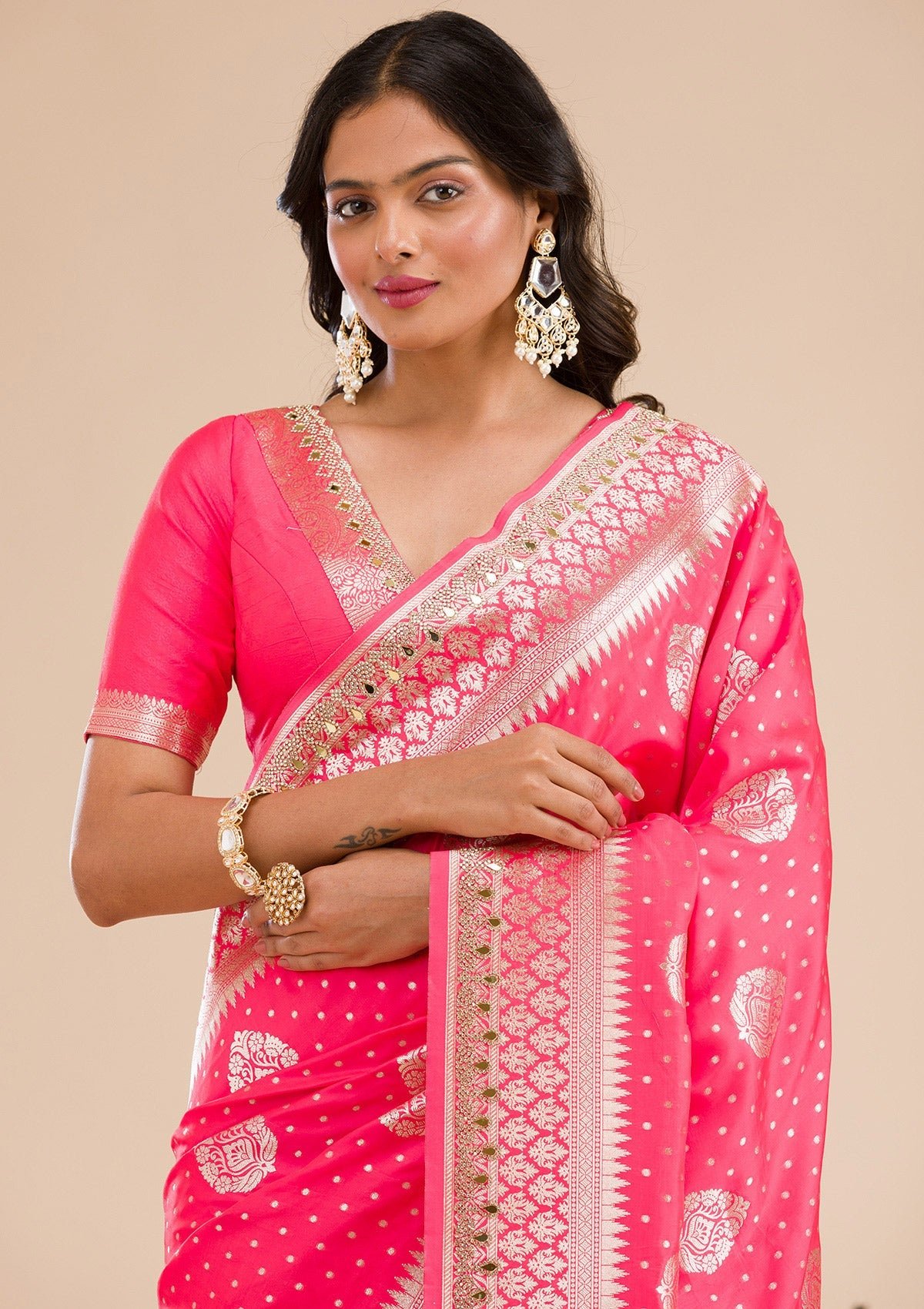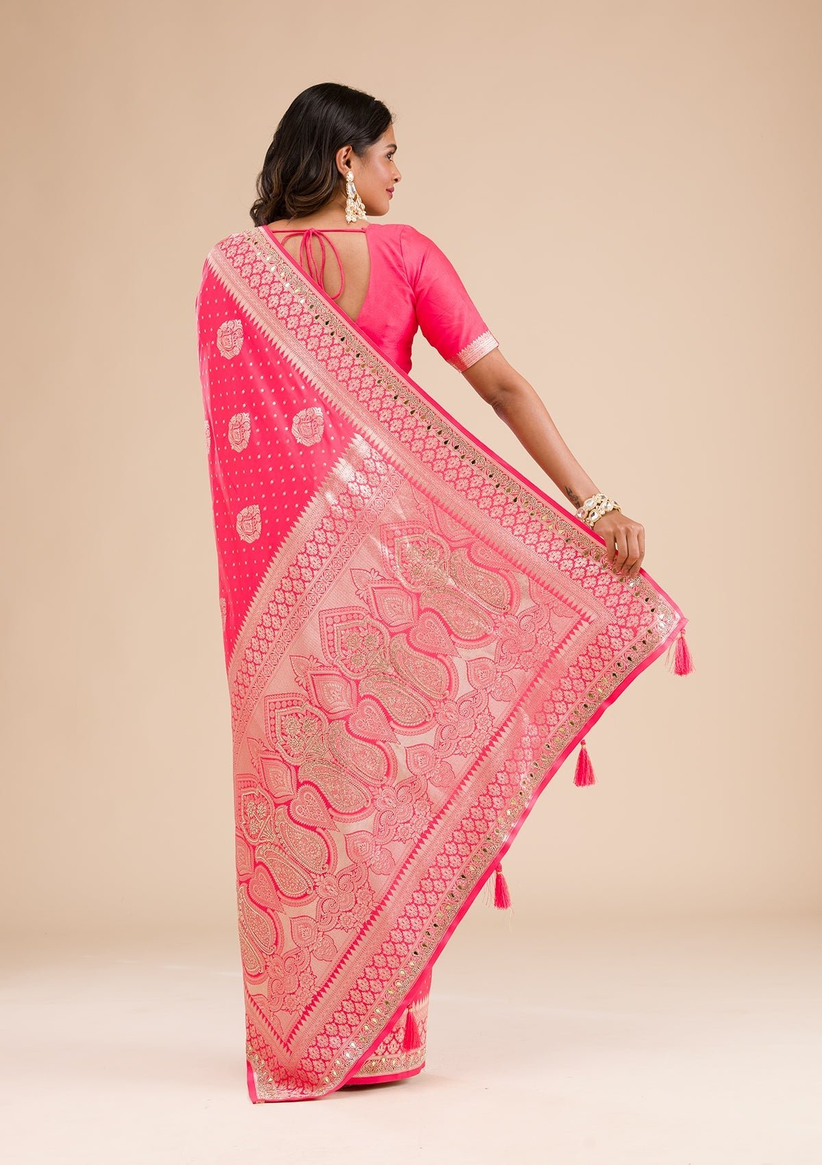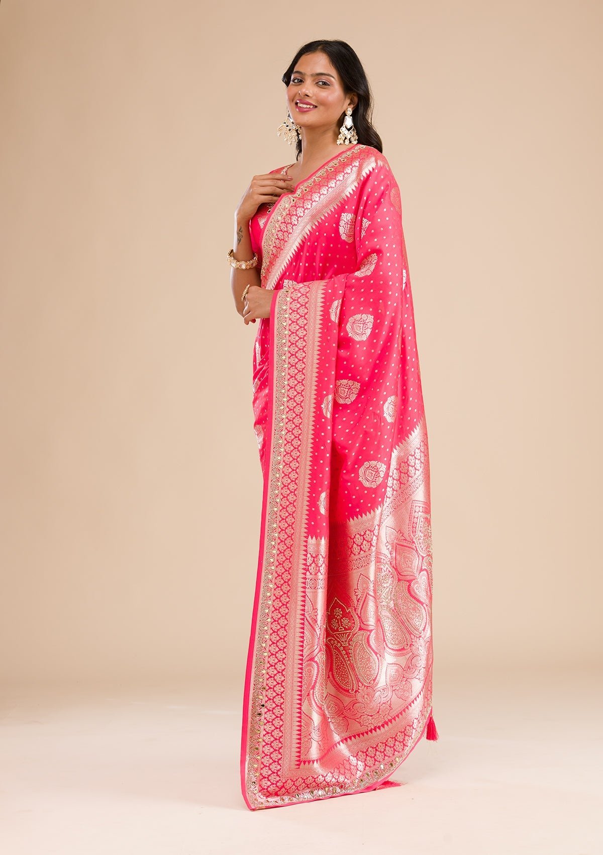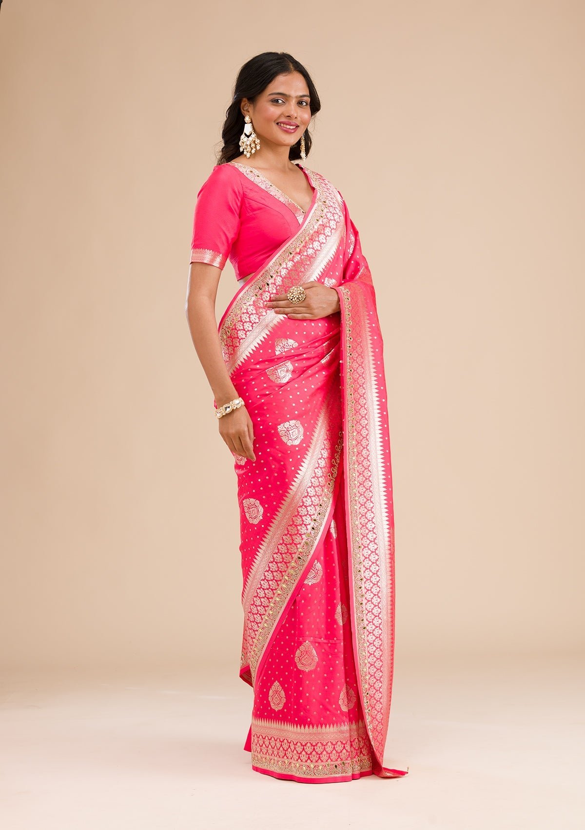 – Pink Saree in Banarasi Silk fabric